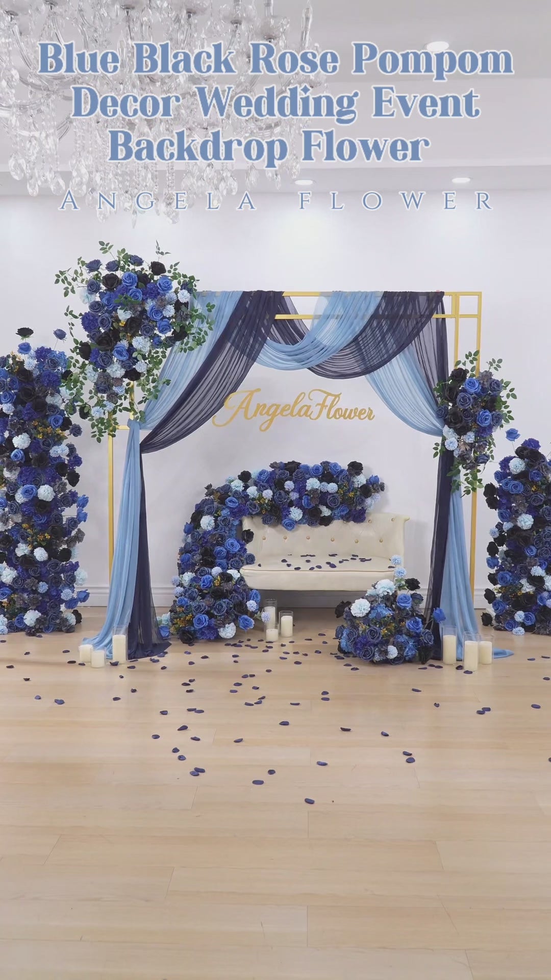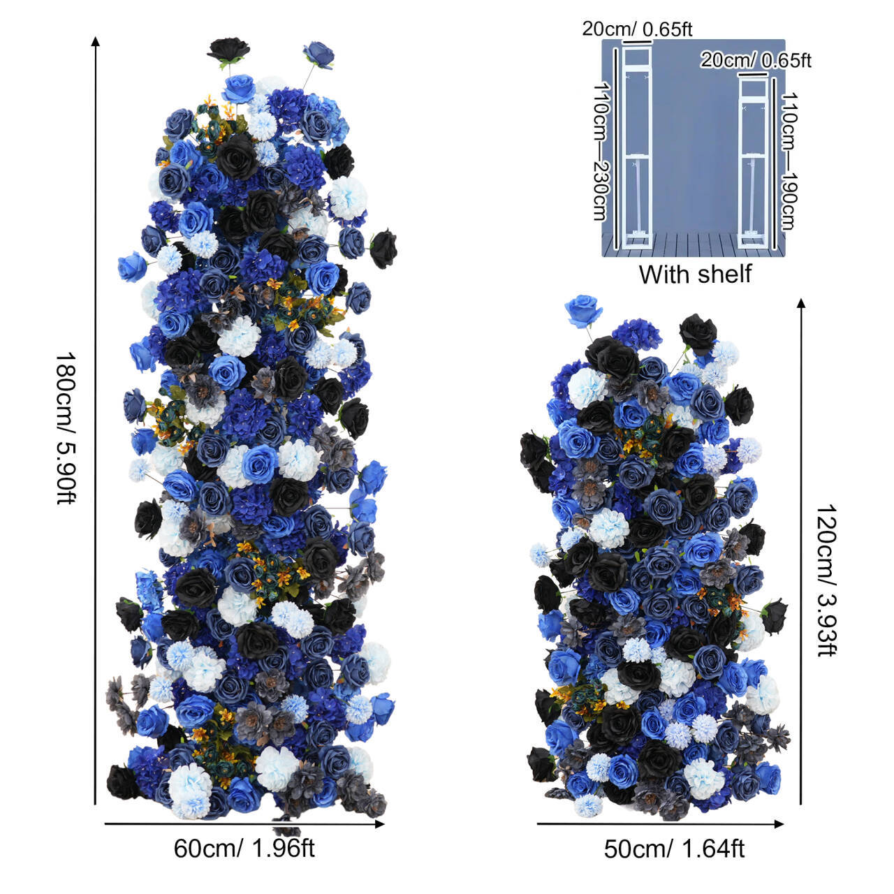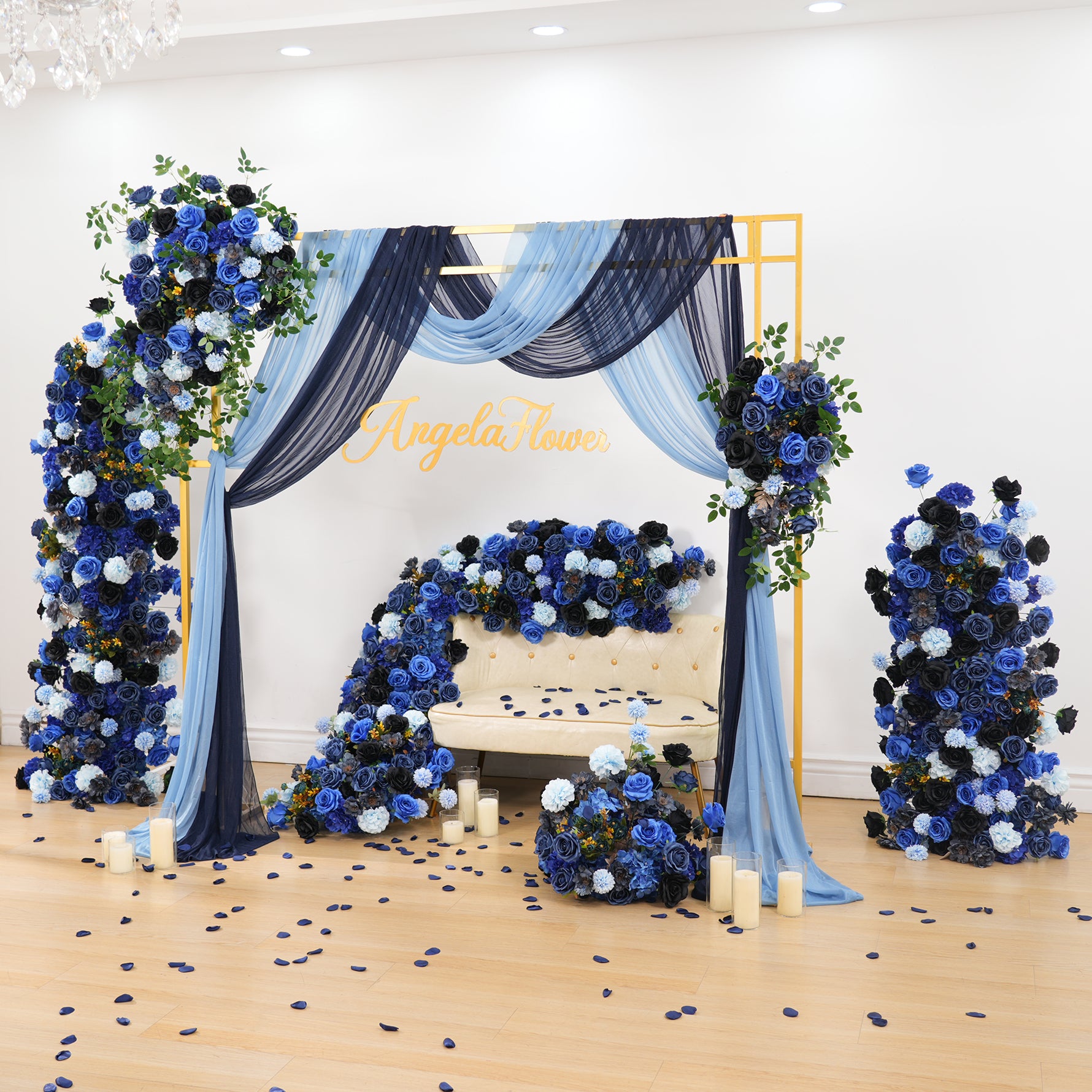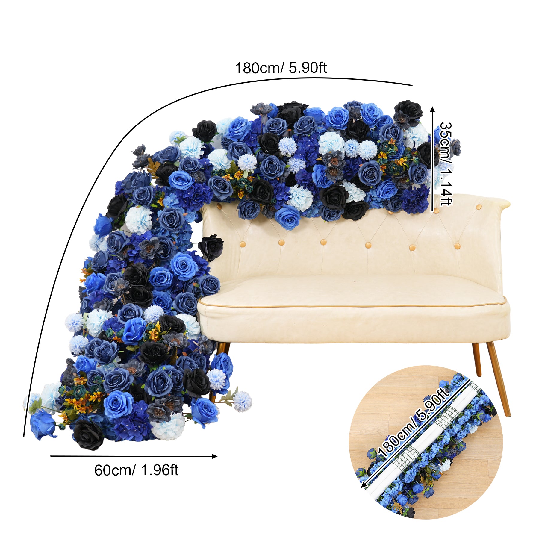 A9012 Black Blue Floral Row Sofa Runner KT Board Wedding Backdrop Aisle Flower Props