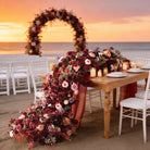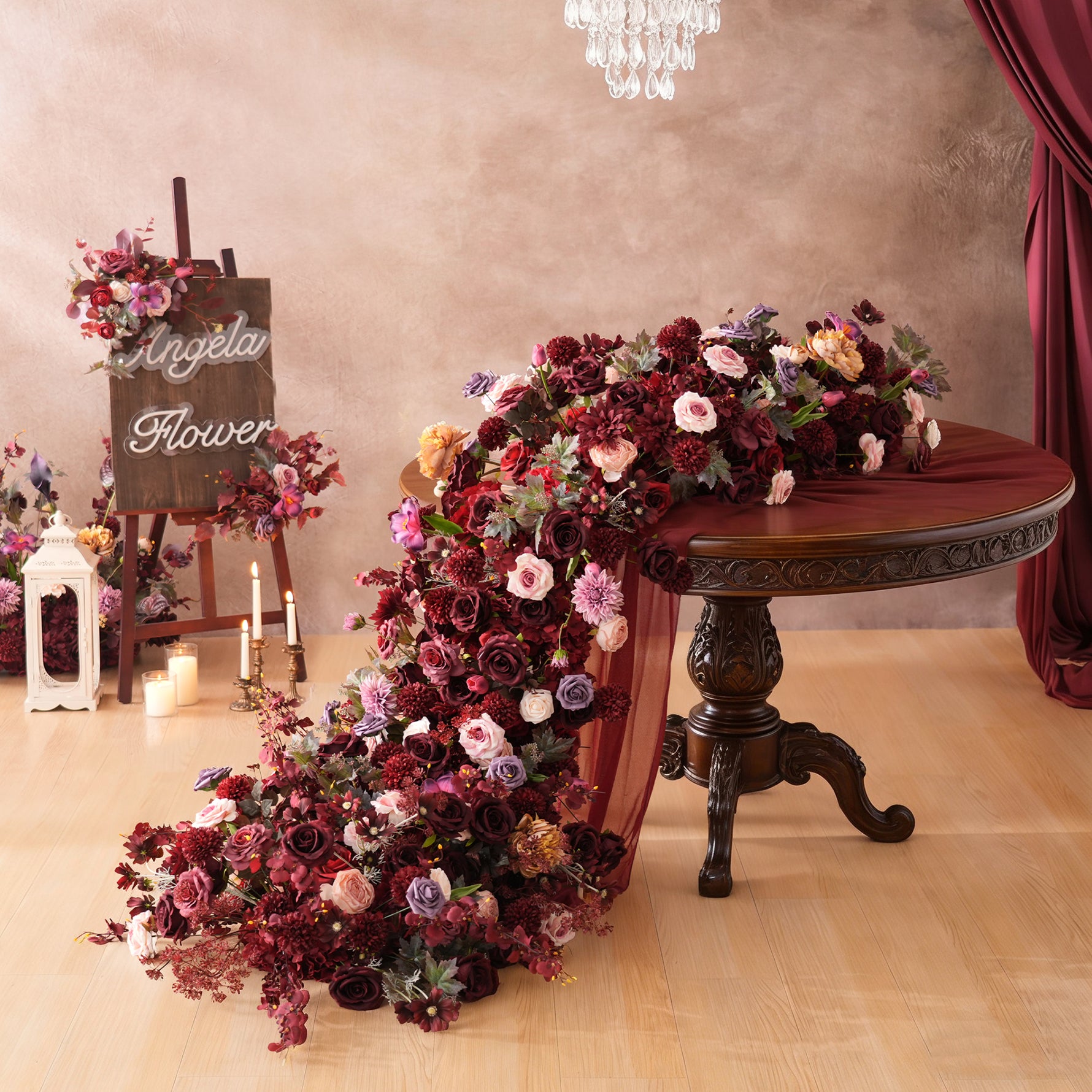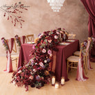 Color Inspiration: Elevate your event with our rich burgundy floral runner. This stunning piece features a tapestry of deep red flowers, creating a luxurious and sophisticated ambiance. Perfect for weddings, banquets, or adding a touch of elegance to any table setting.