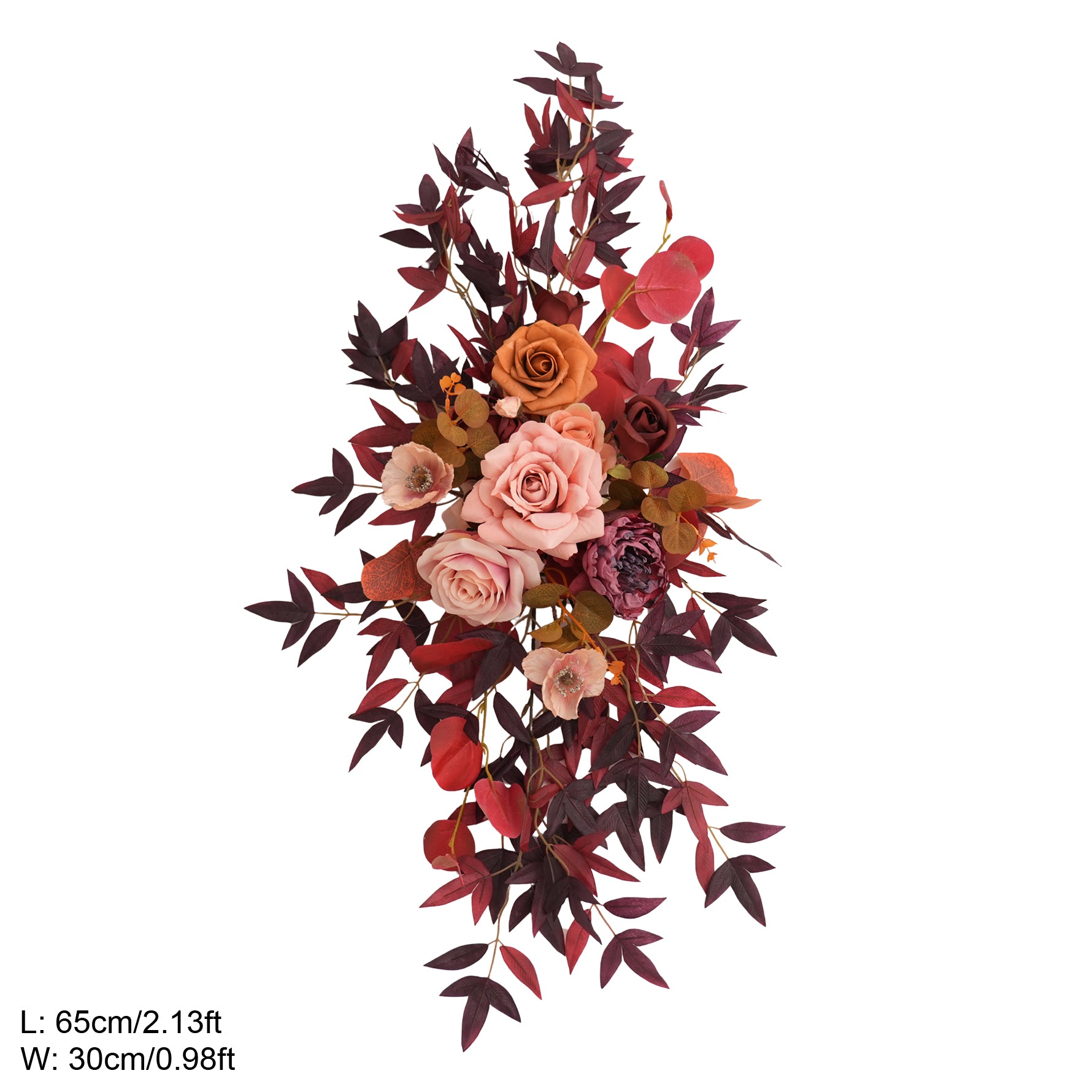 Color Inspiration: This Artificial Hanging Floral in deep red foliage with delicate blush roses brings timeless romance to any space. Crafted from high-quality silk materials, it offers a lush, realistic look without maintenance. Perfect for creating a warm wedding backdrop, enhancing event decor, or adding a cozy touch to your home year-round. Lightweight and easy to hang, it arrives ready to display.