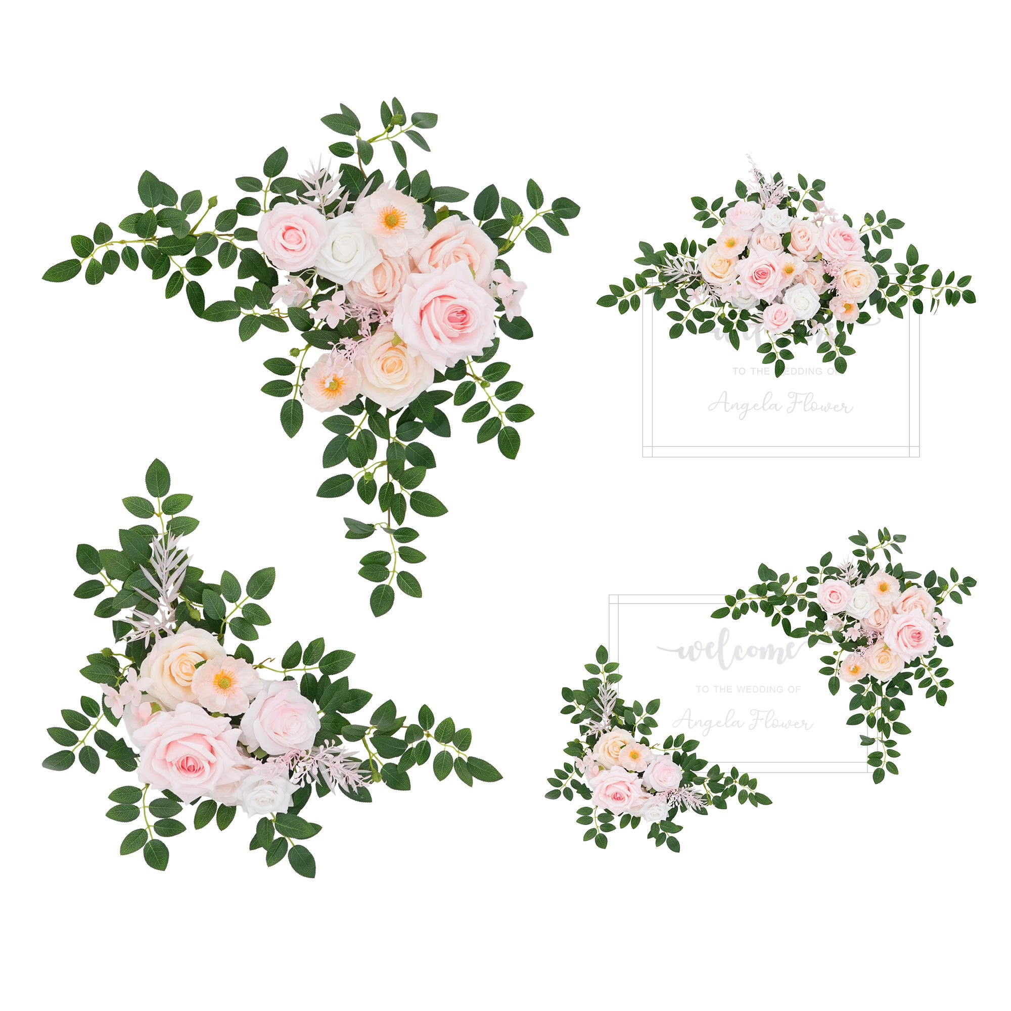A9004 2pcs Pink Rose Green Leaves Welcome Sign Flower Wedding Reception Props