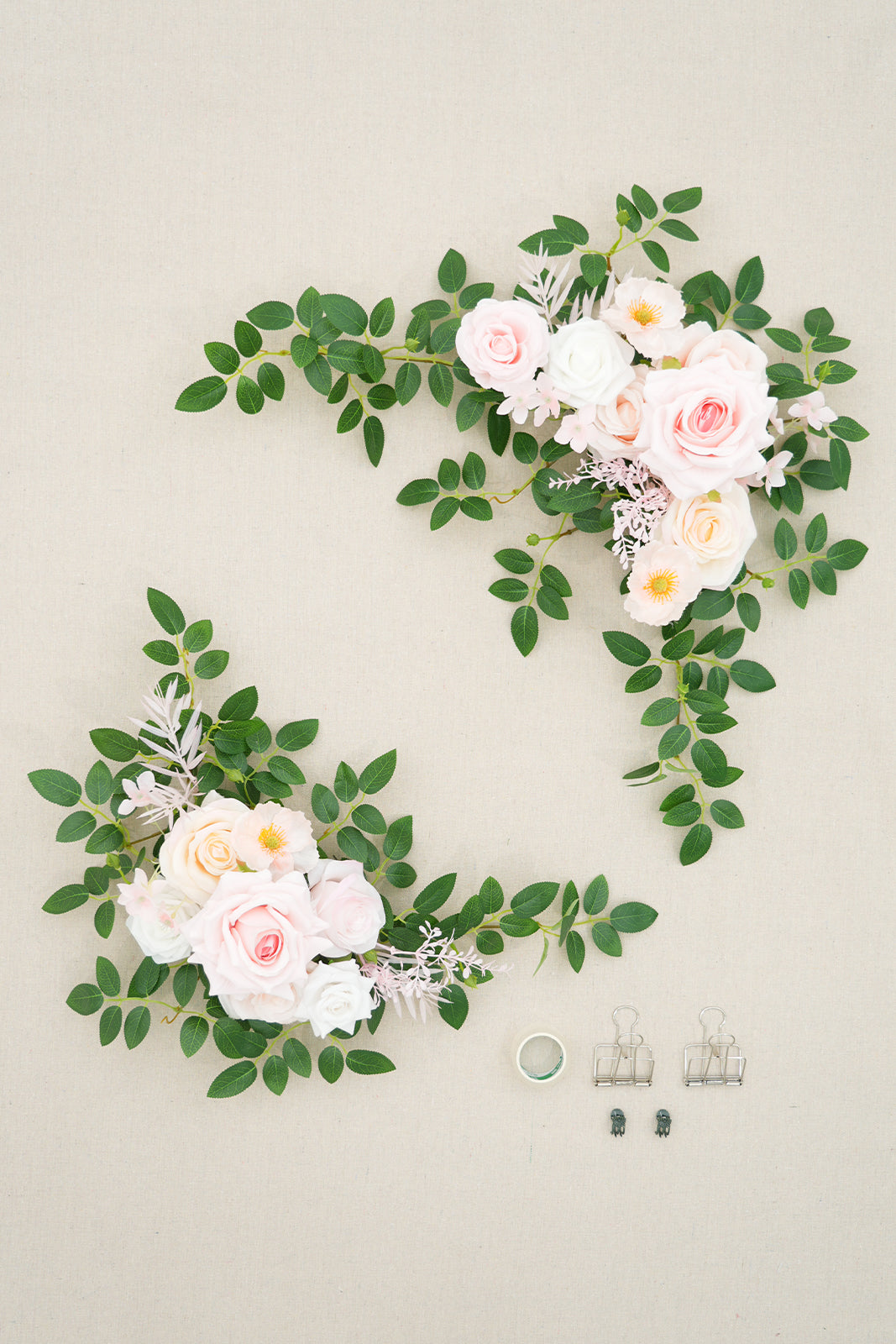 Color Inspiration: Welcome guests with this charming set! Soft pink roses and lush greenery create a warm, inviting entrance. The delicate pink hues symbolize grace and joy. Enjoy everlasting beauty without the upkeep – these artificial flowers require no watering. Perfect for weddings, parties, or brightening your home. A delightful touch of elegance that lasts. Bring a touch of romance to any space.