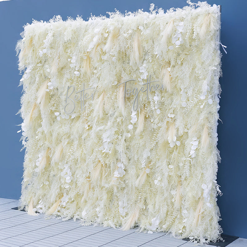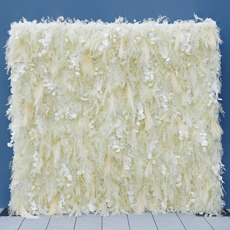 A7794 Feather Pampas Grass Apple Leaf Champagne Ivory Cloth Flower Wall