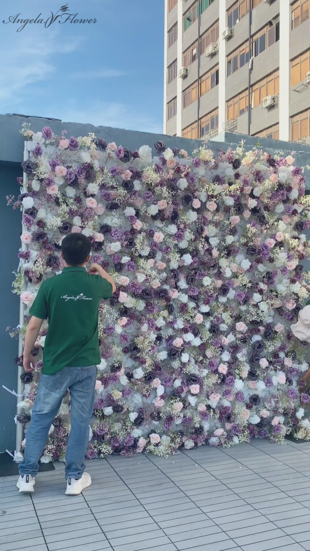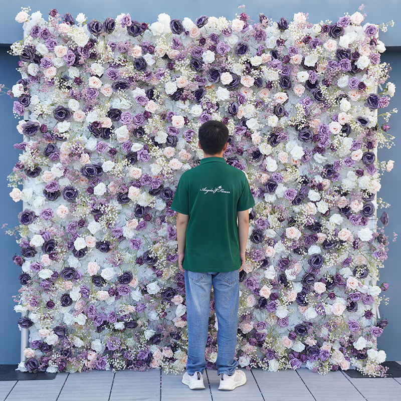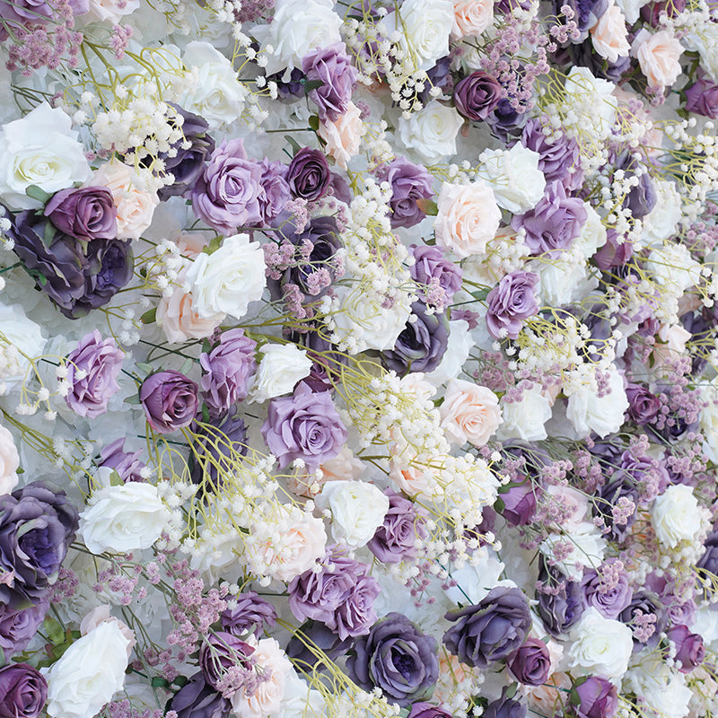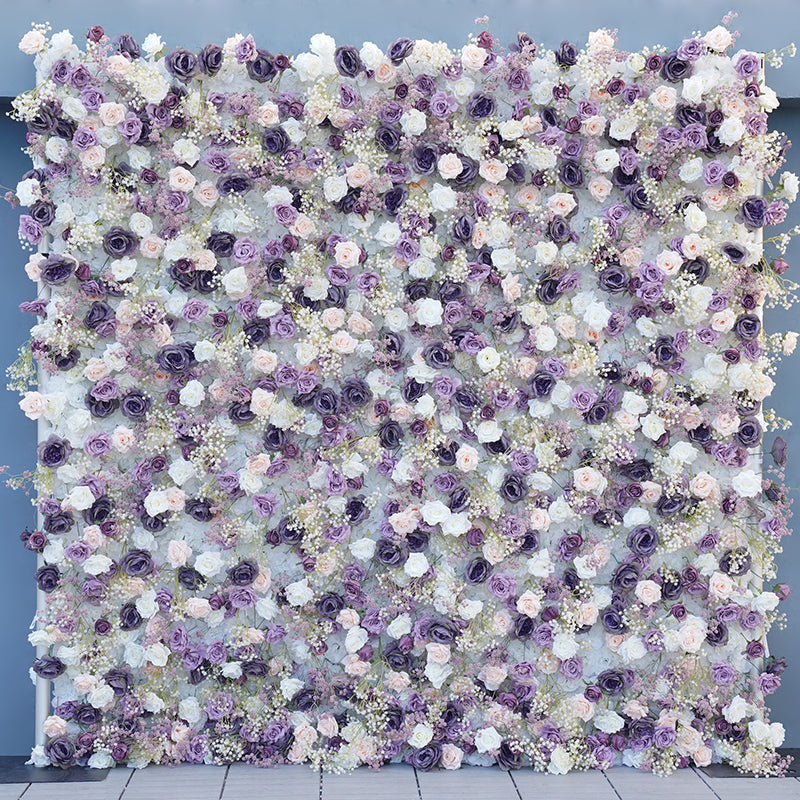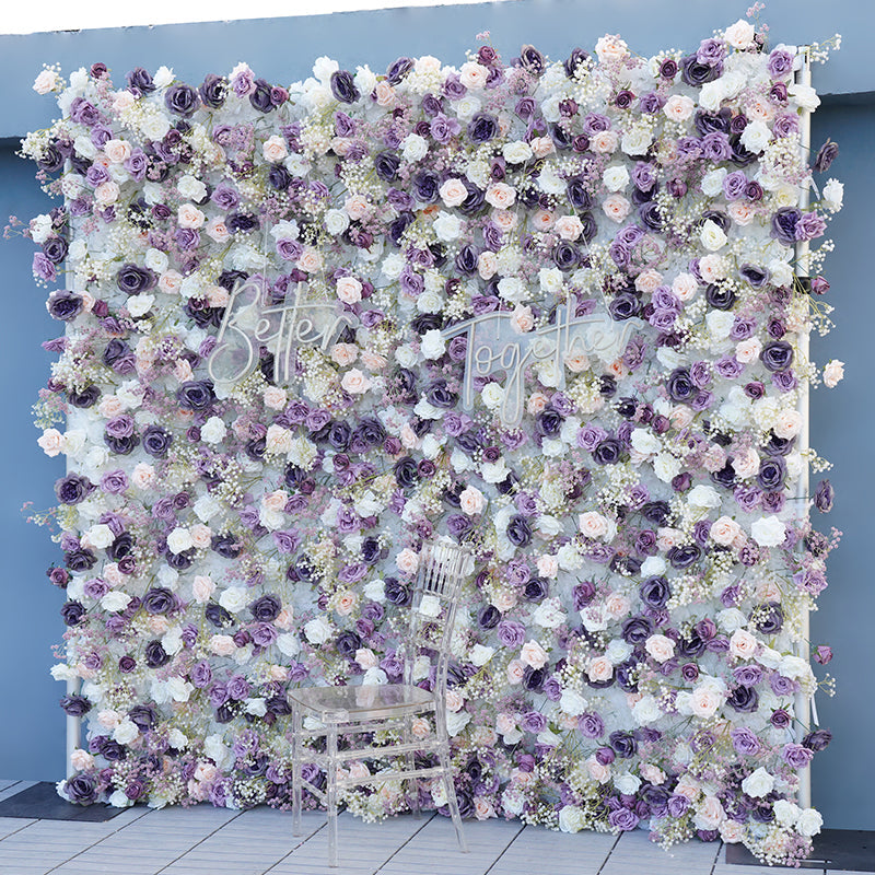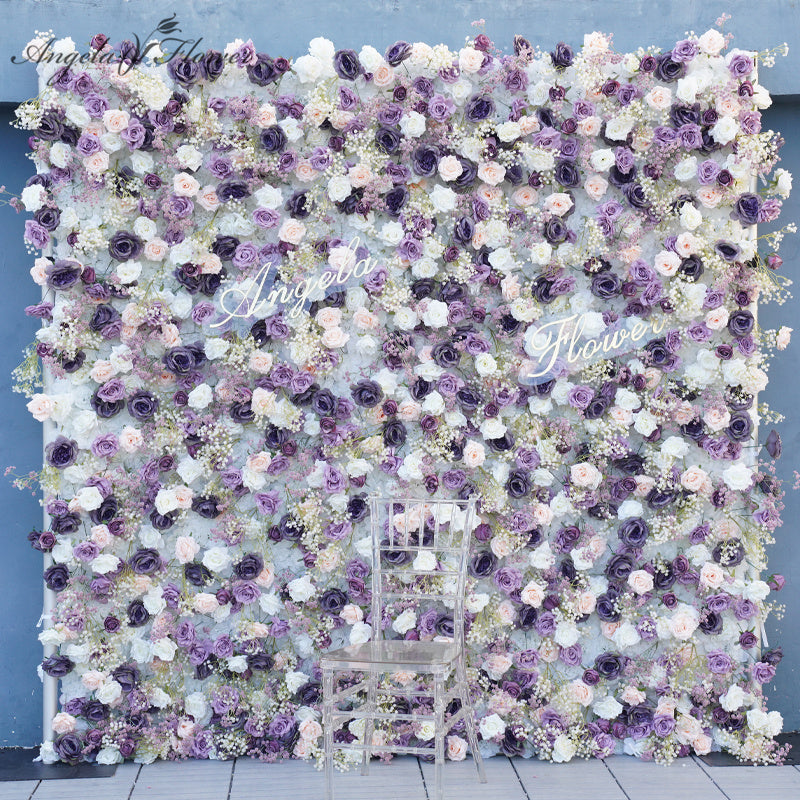 A7835 5D White Purple Wedding Backdrop Decor Cloth Curtain Roll Up Flower Wall