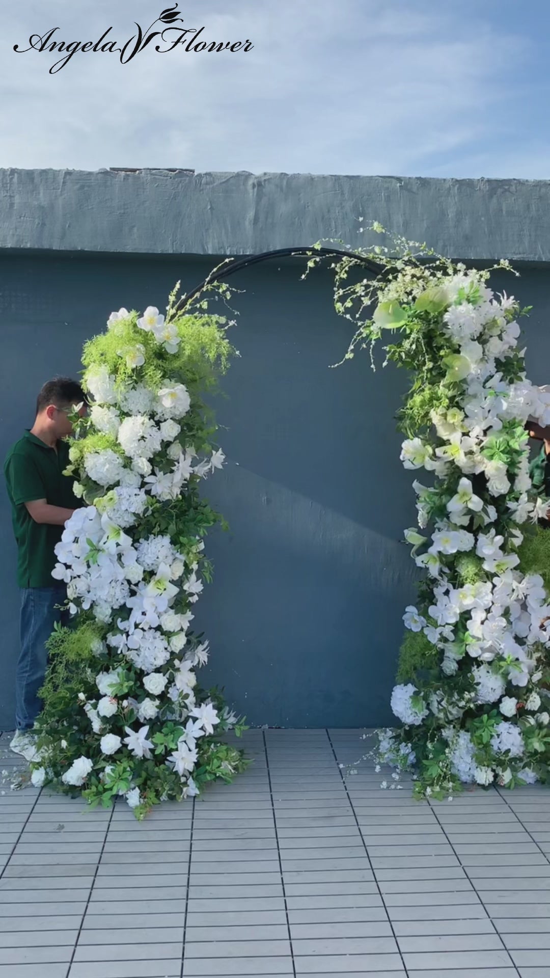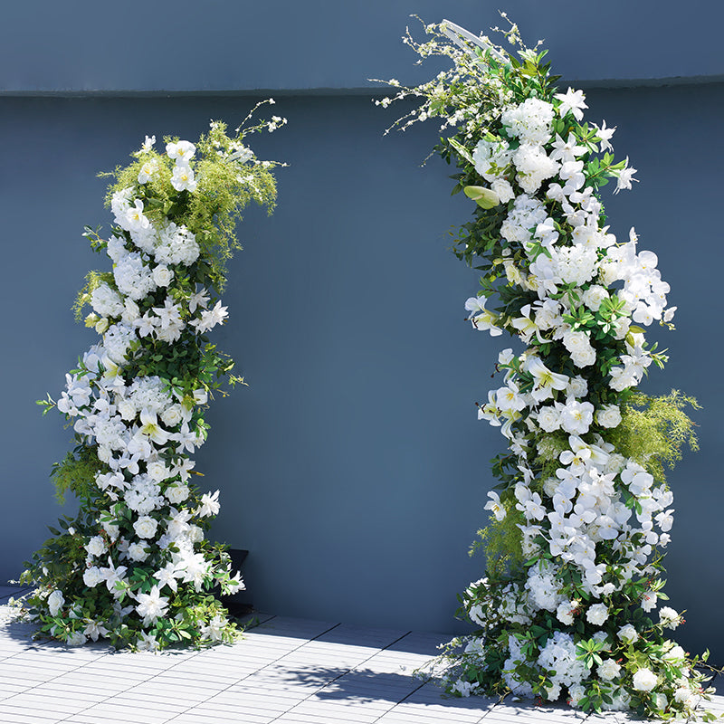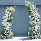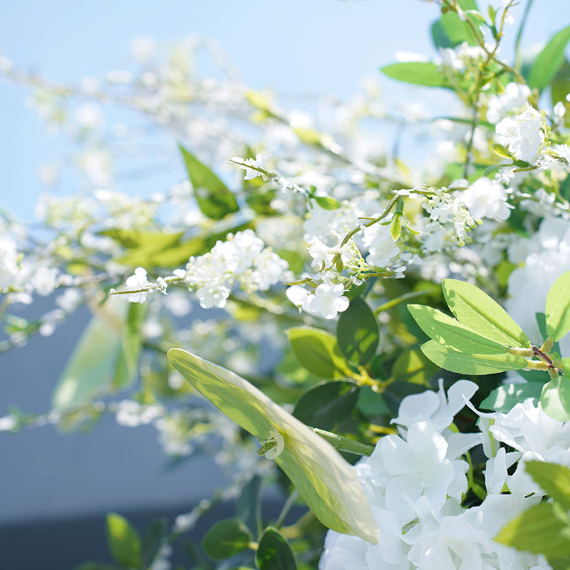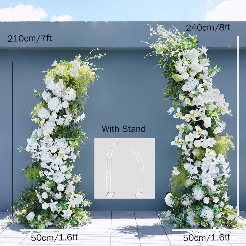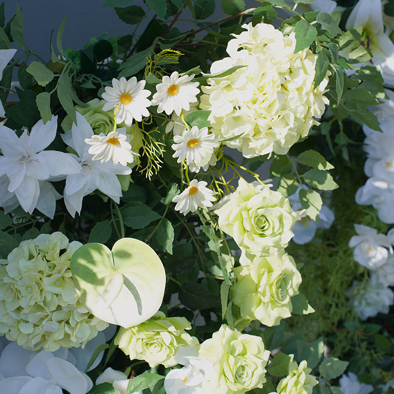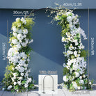 A7840 White Rose Green Leaves Flower Row Decor Wedding Backdrop Horn Arch