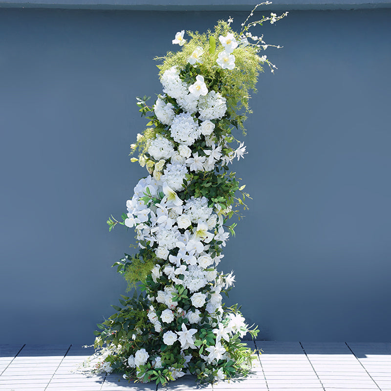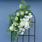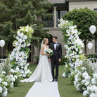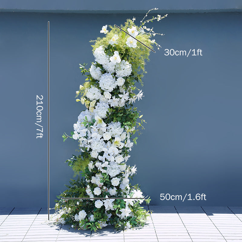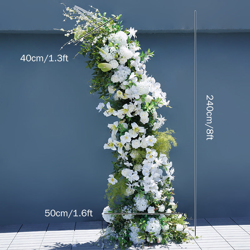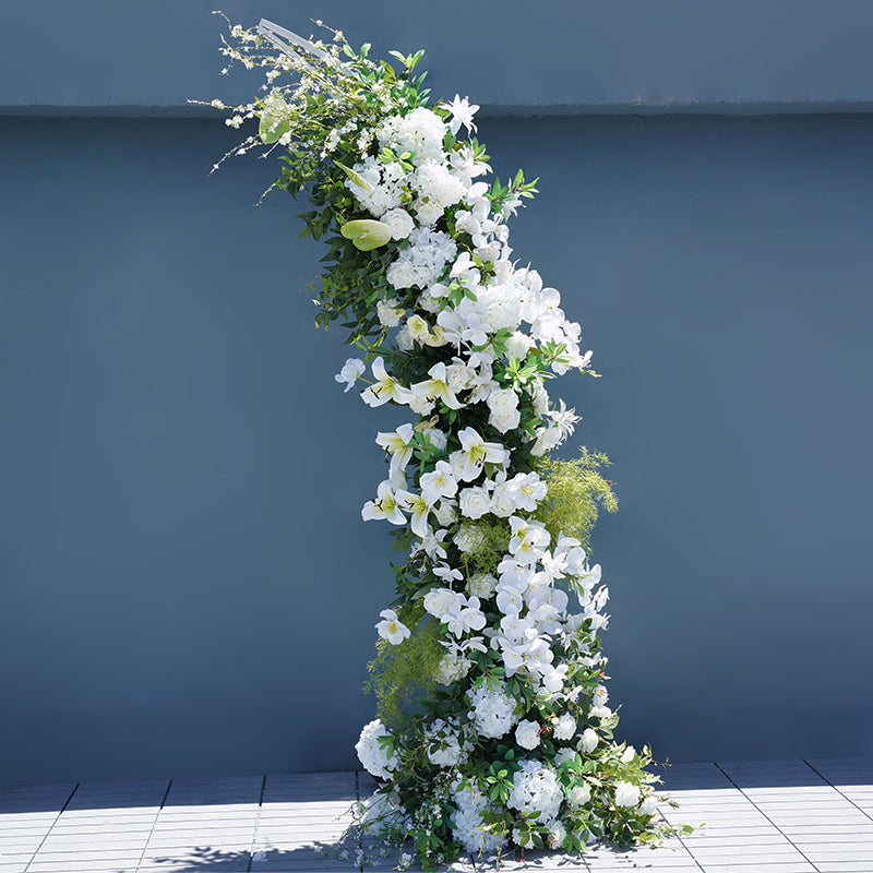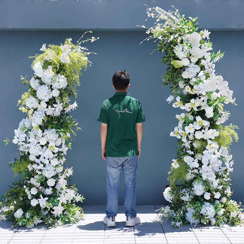 A7840 White Rose Green Leaves Flower Row Decor Wedding Backdrop Horn Arch