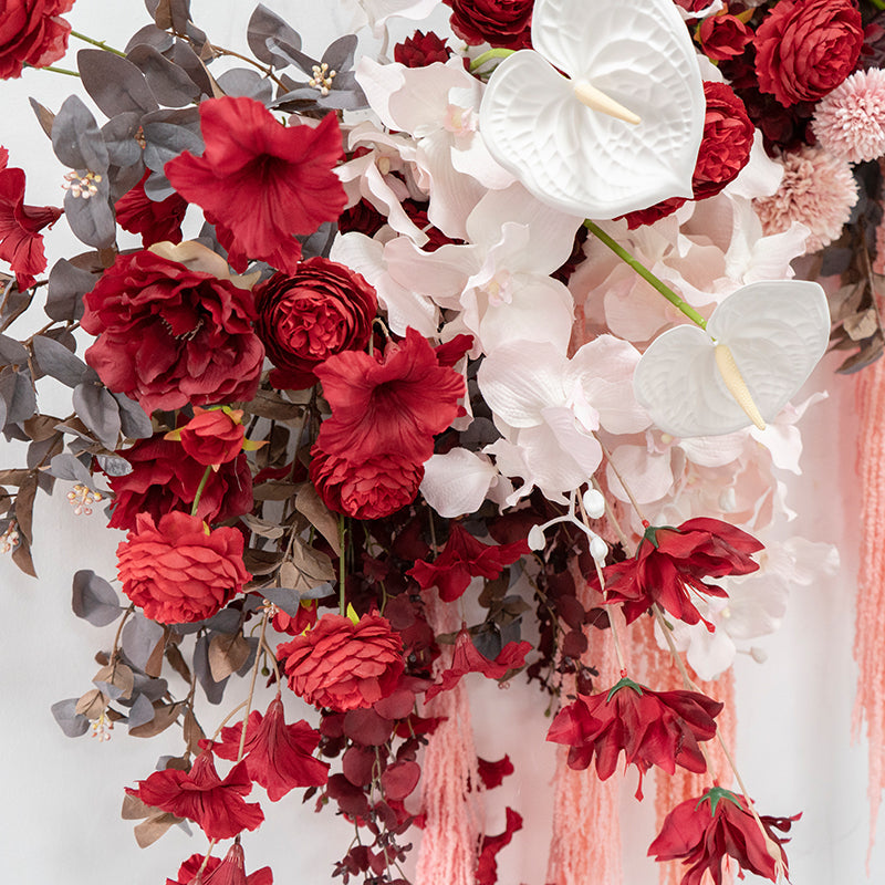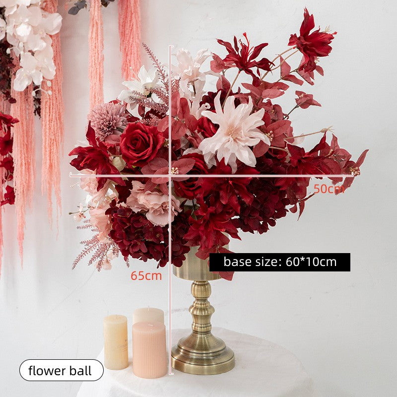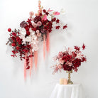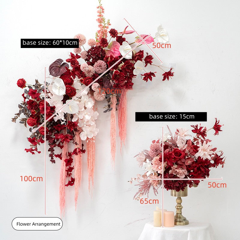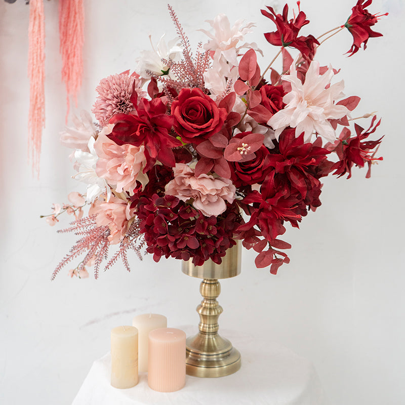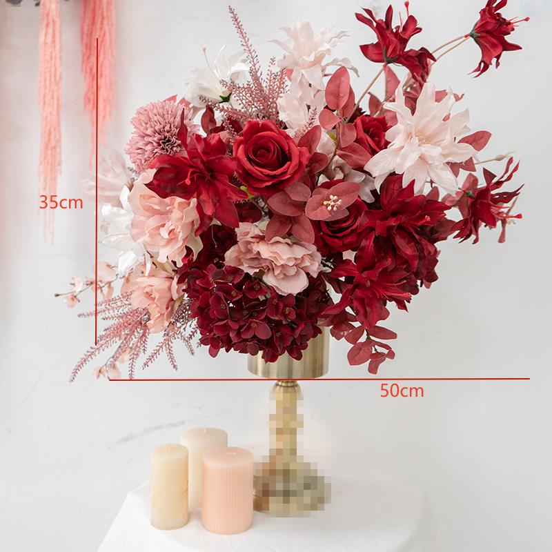 A8063 Red Rose Palm Pampas Grass Wedding Floral Arrangement Table Centerpiece Wall