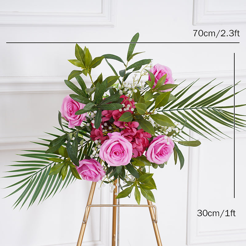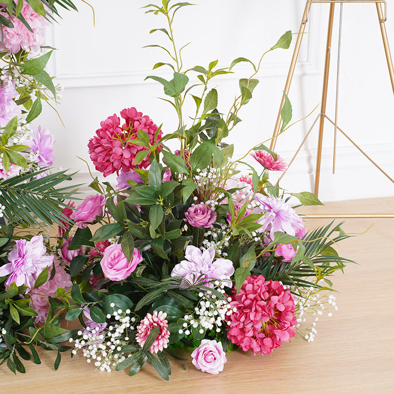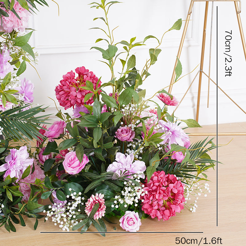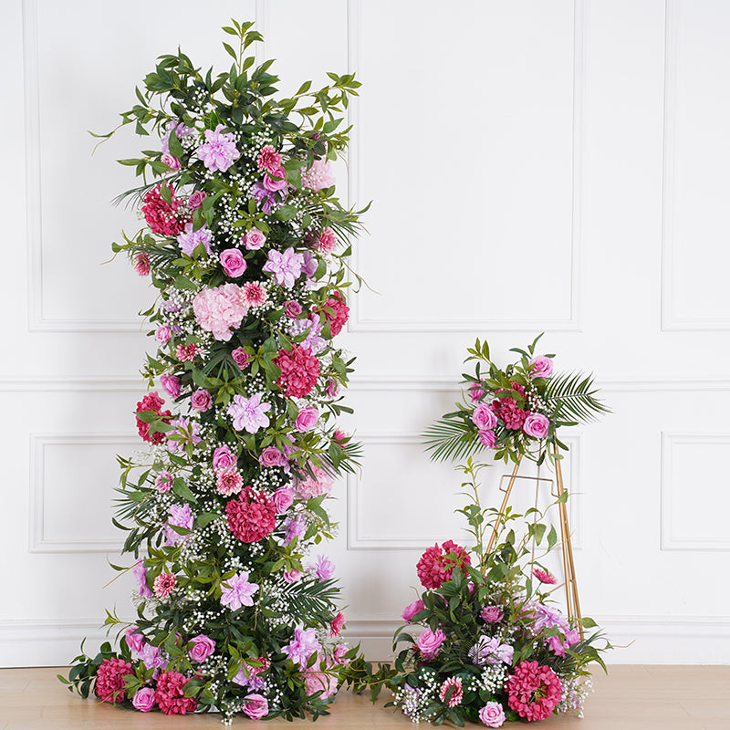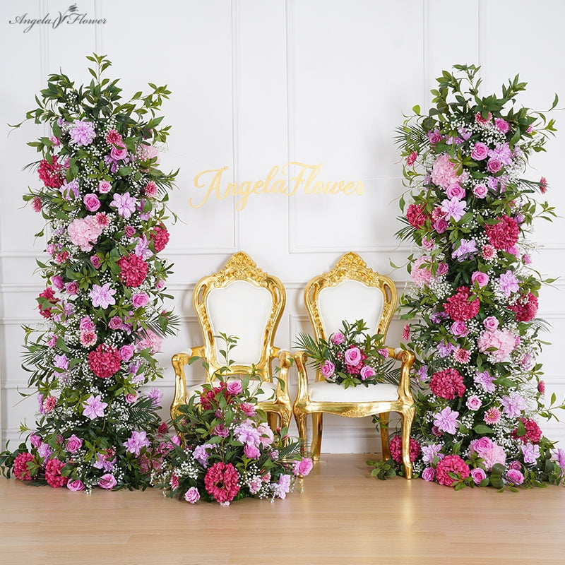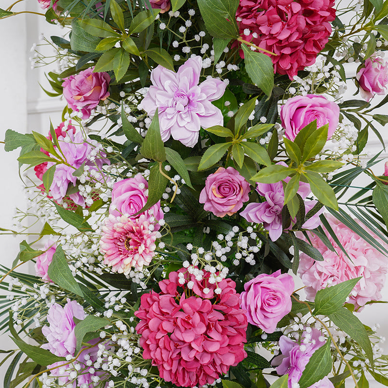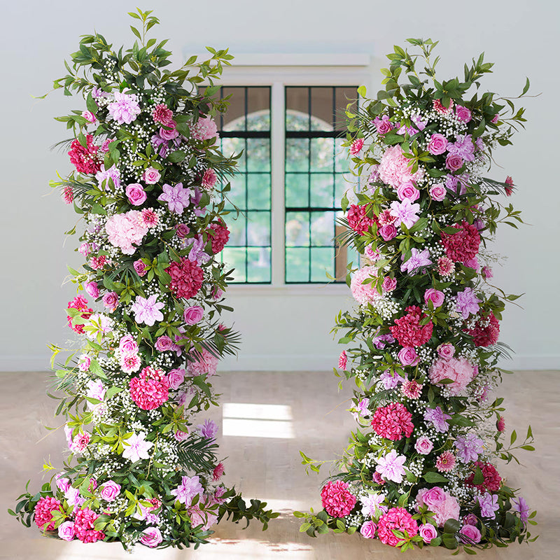 A8116 Hot Pink Purple With Greenery Event Wedding Backdrop Arch Floral Arrangement