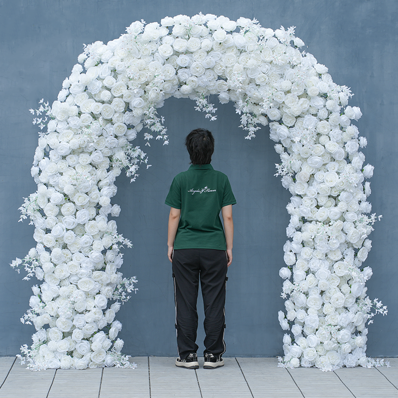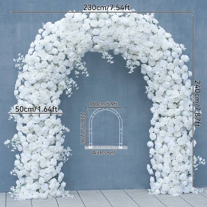 A8625 White Rose Flower Row Decor Wedding Backdrop Frame Arch