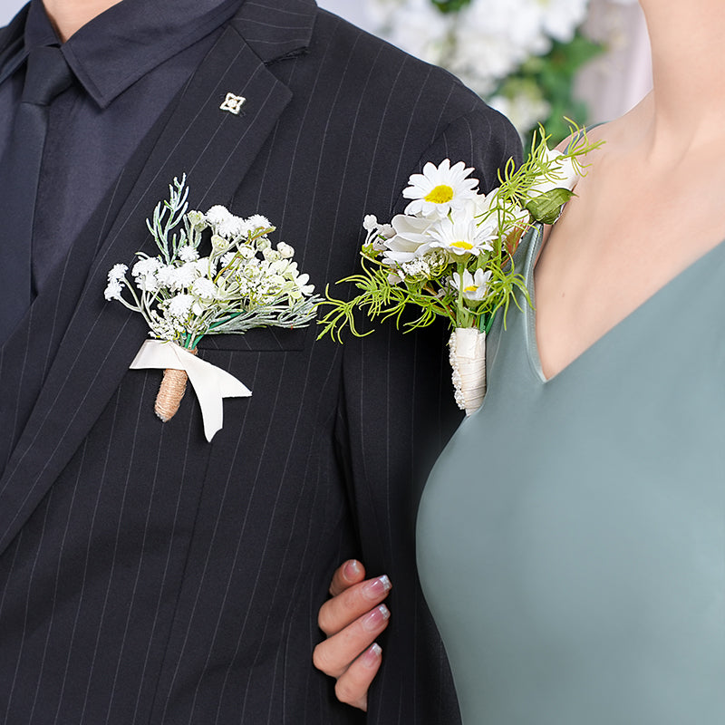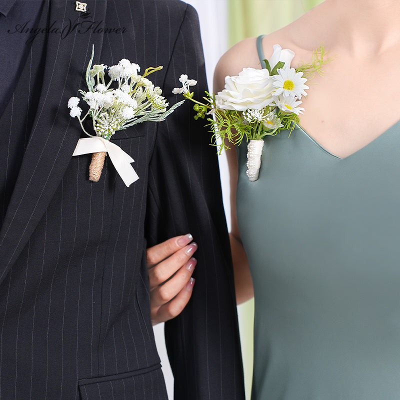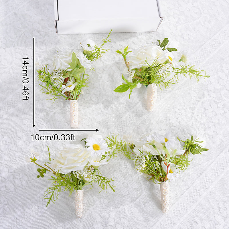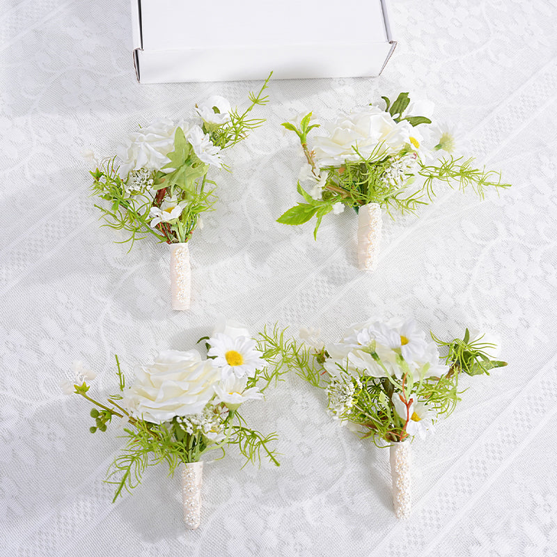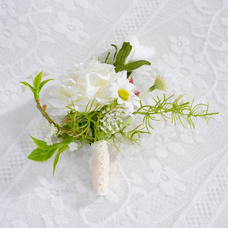A869756 White Series Daisy Corsage Flower Bridal Bridegroom Wedding Event Supplies