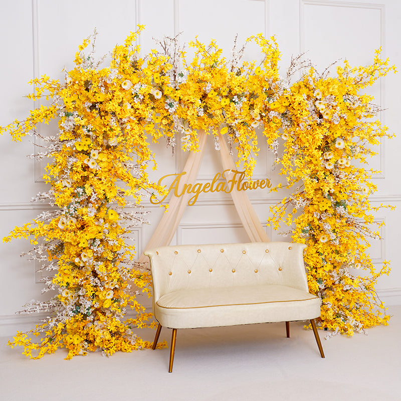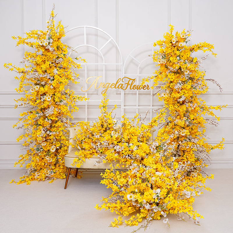 A8719 Yellow Jasmine Poppy Table Sofa Runner Wedding Backdrop Frame Decor Floral Arrangement