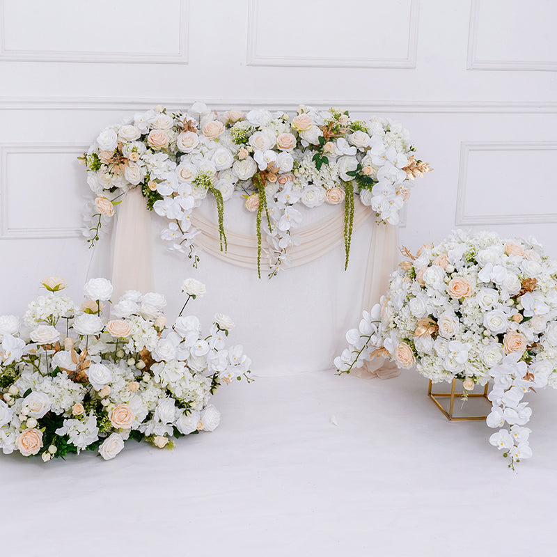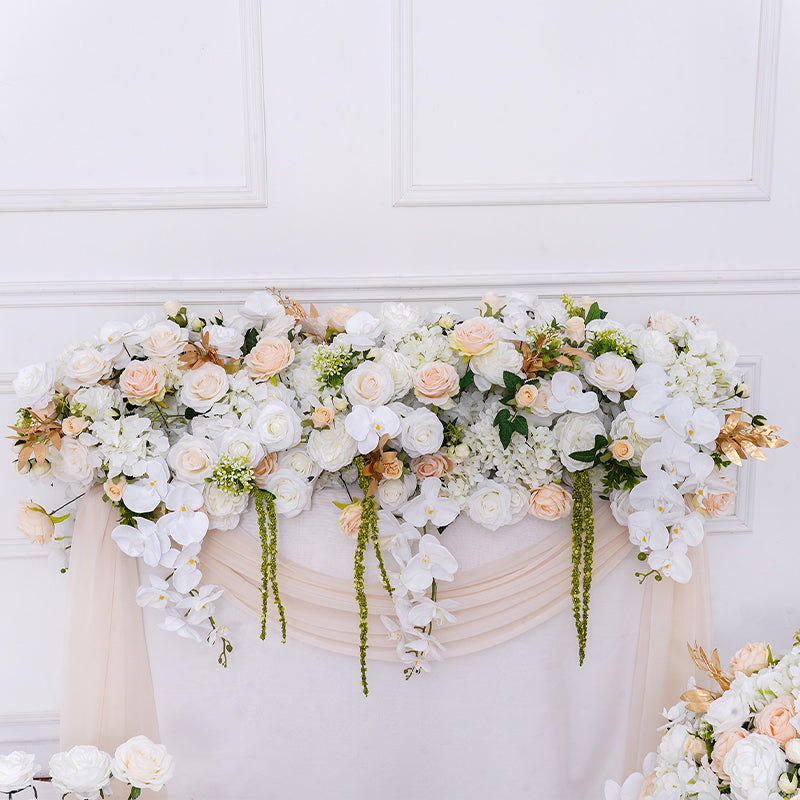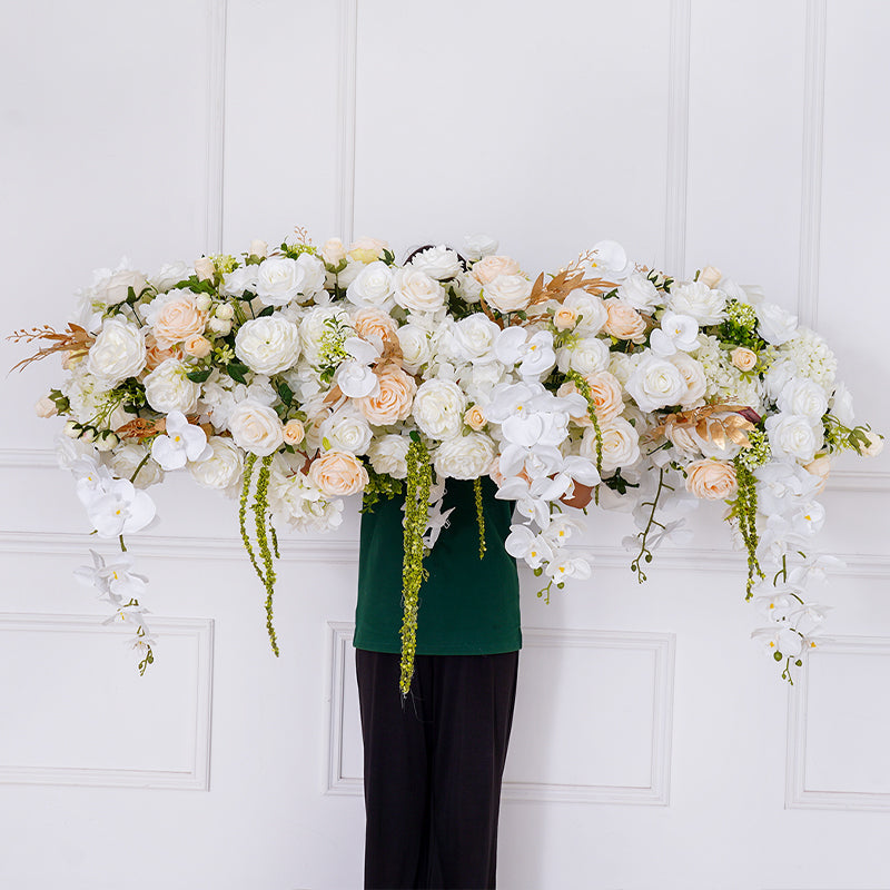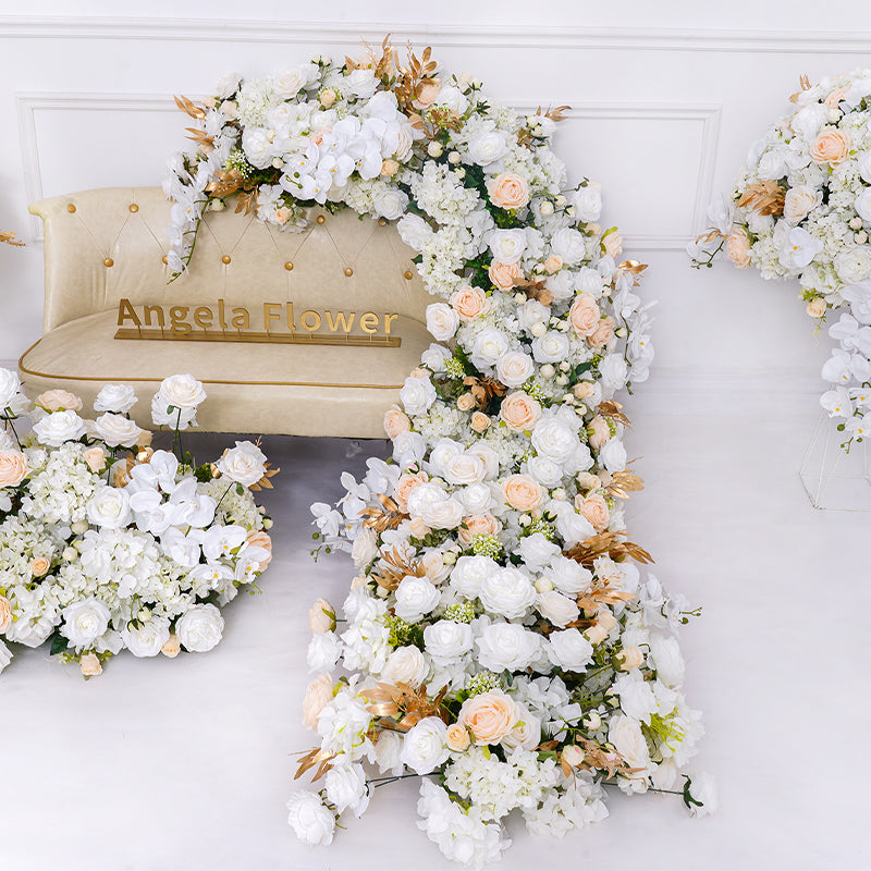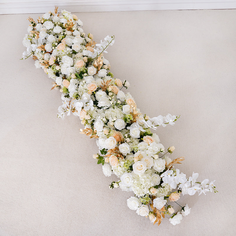 A8721 White Rose Orchid Table Sofa Runner Wedding Backdrop Table Decor Flower Bal
