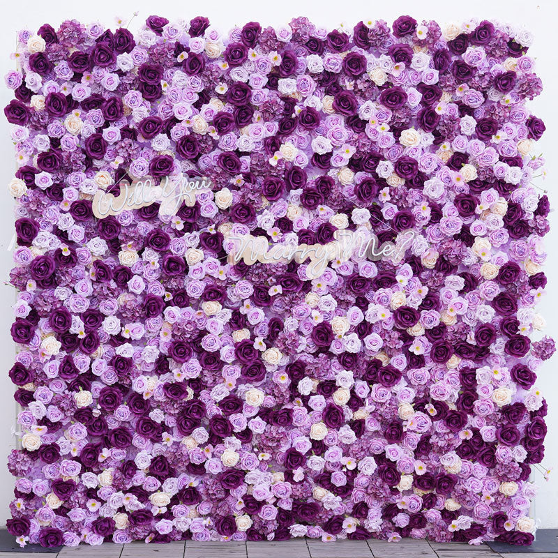 A8797 5D Purple Wedding Background Decoration Fabric Flower Wall Party Prop