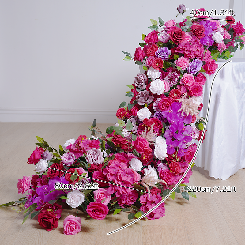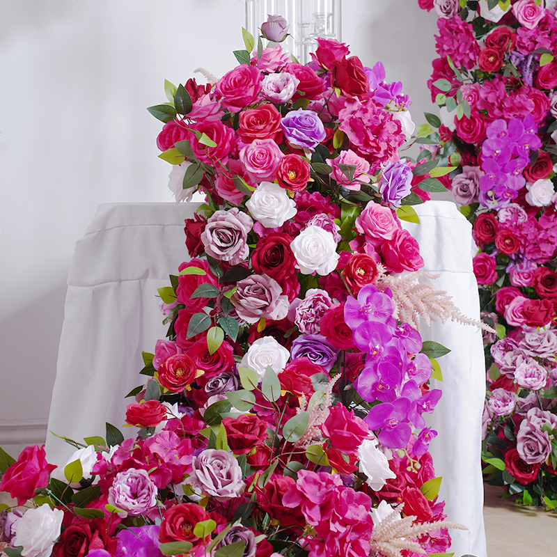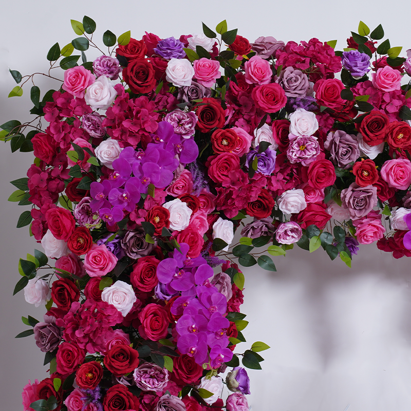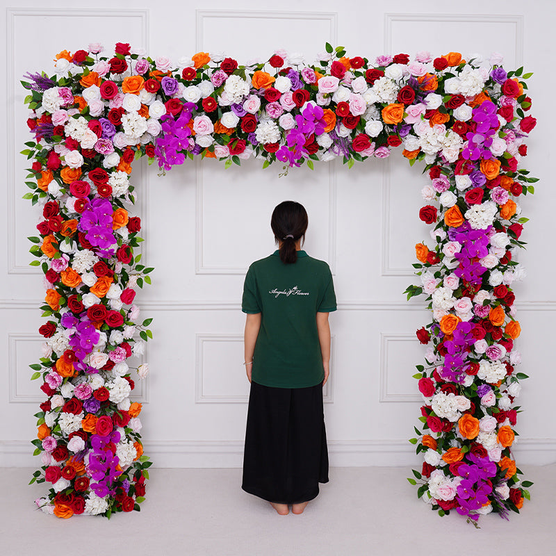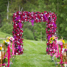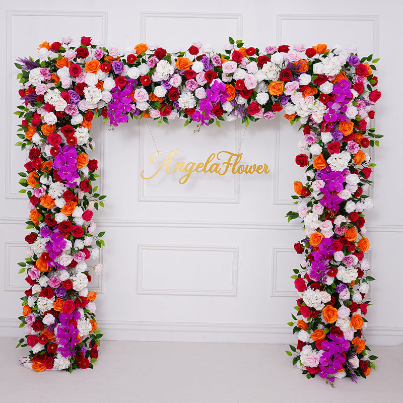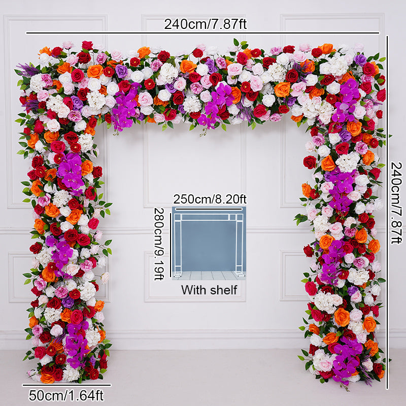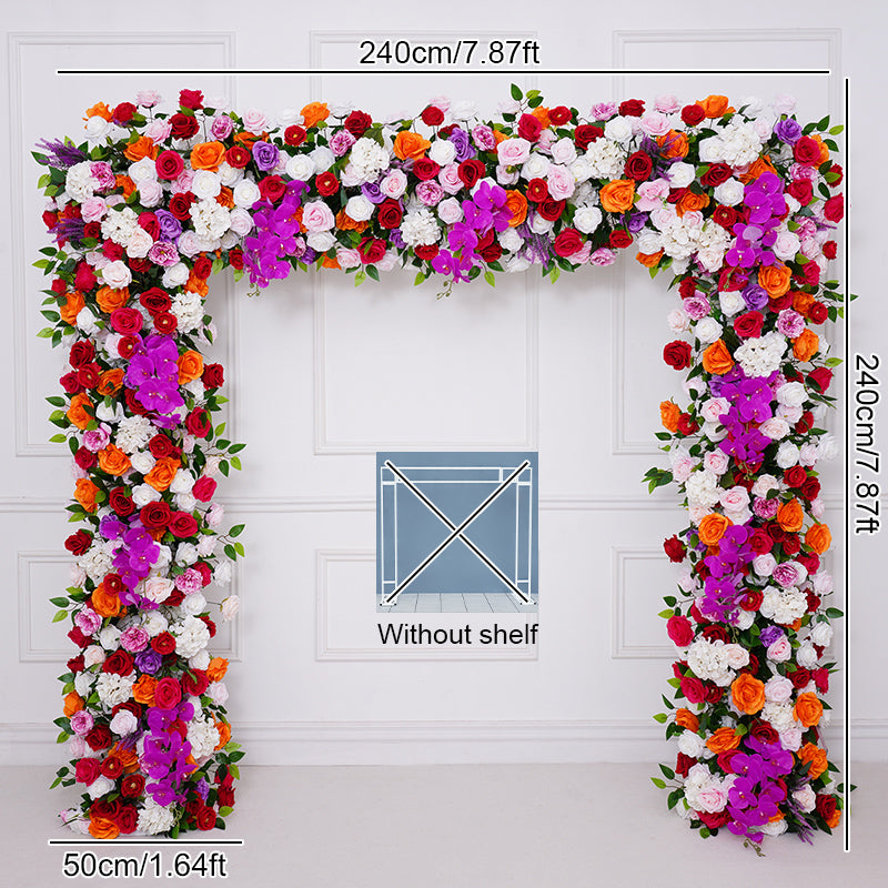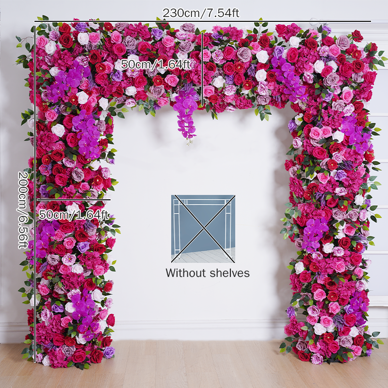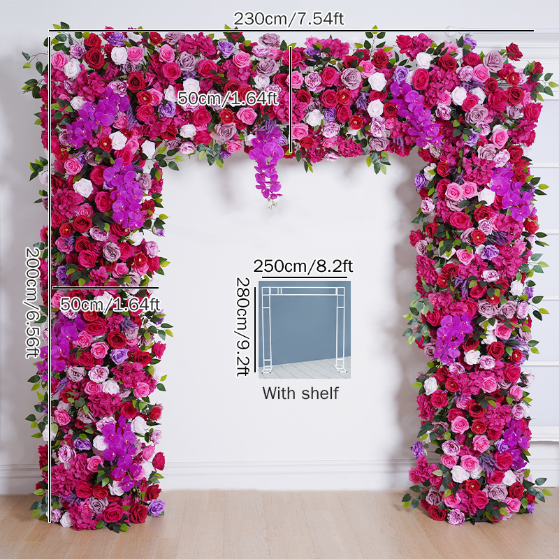 A8805 Wedding Backdrop Arch Frame Decorated Hot Pink Rose Orchid Row