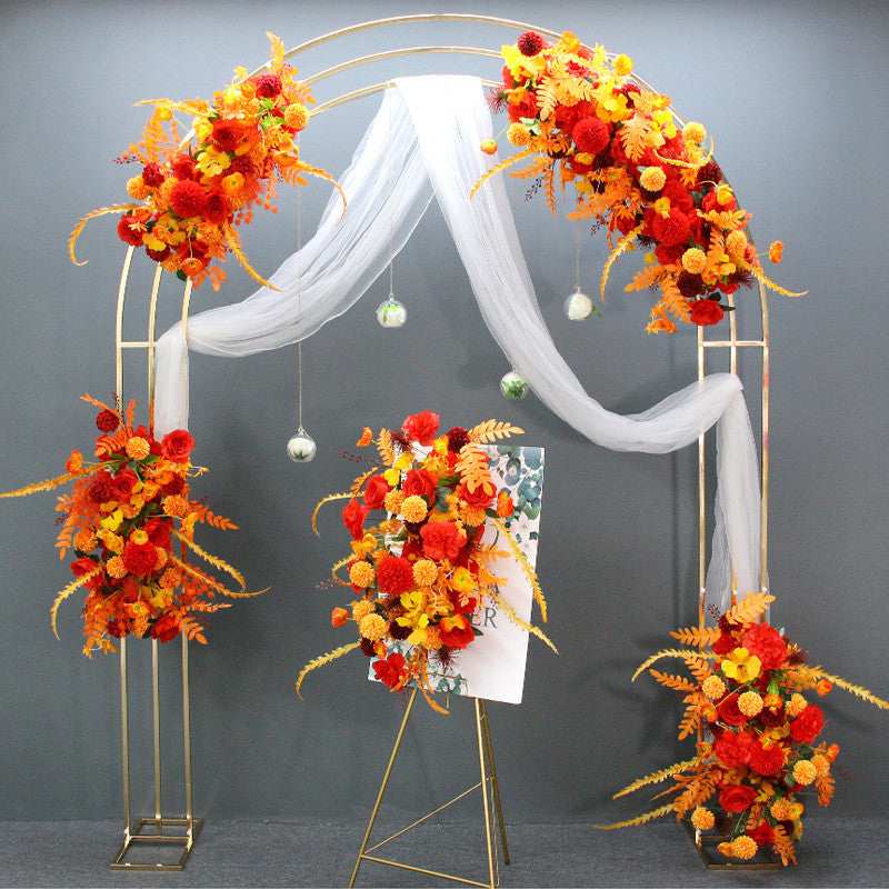 Gold-Plated Curved Wedding Backdrop Decor Floral Arrangement A7449 A7463