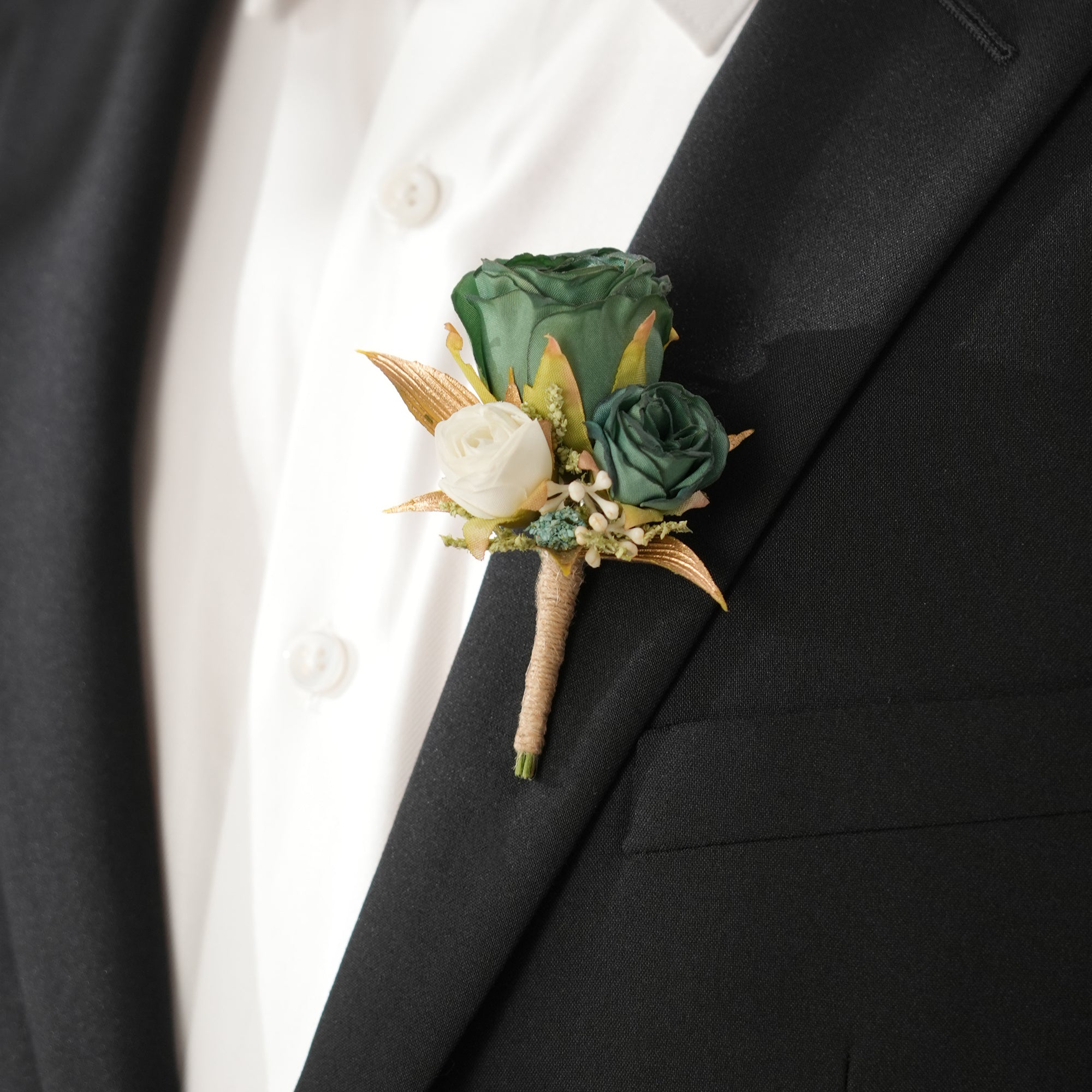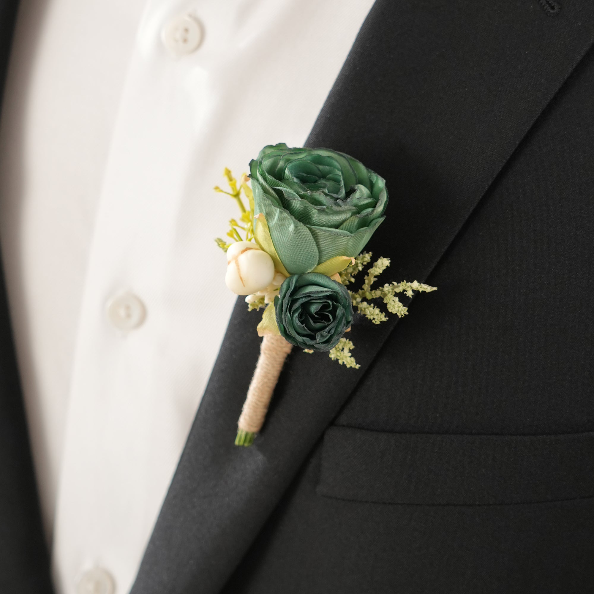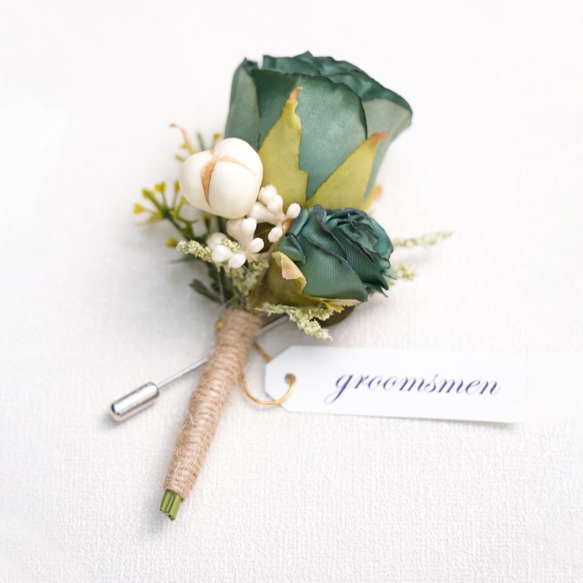A9026 6pcs/set Green Rose Natrual Dried Corsage Flower Groom Wedding Decor Props