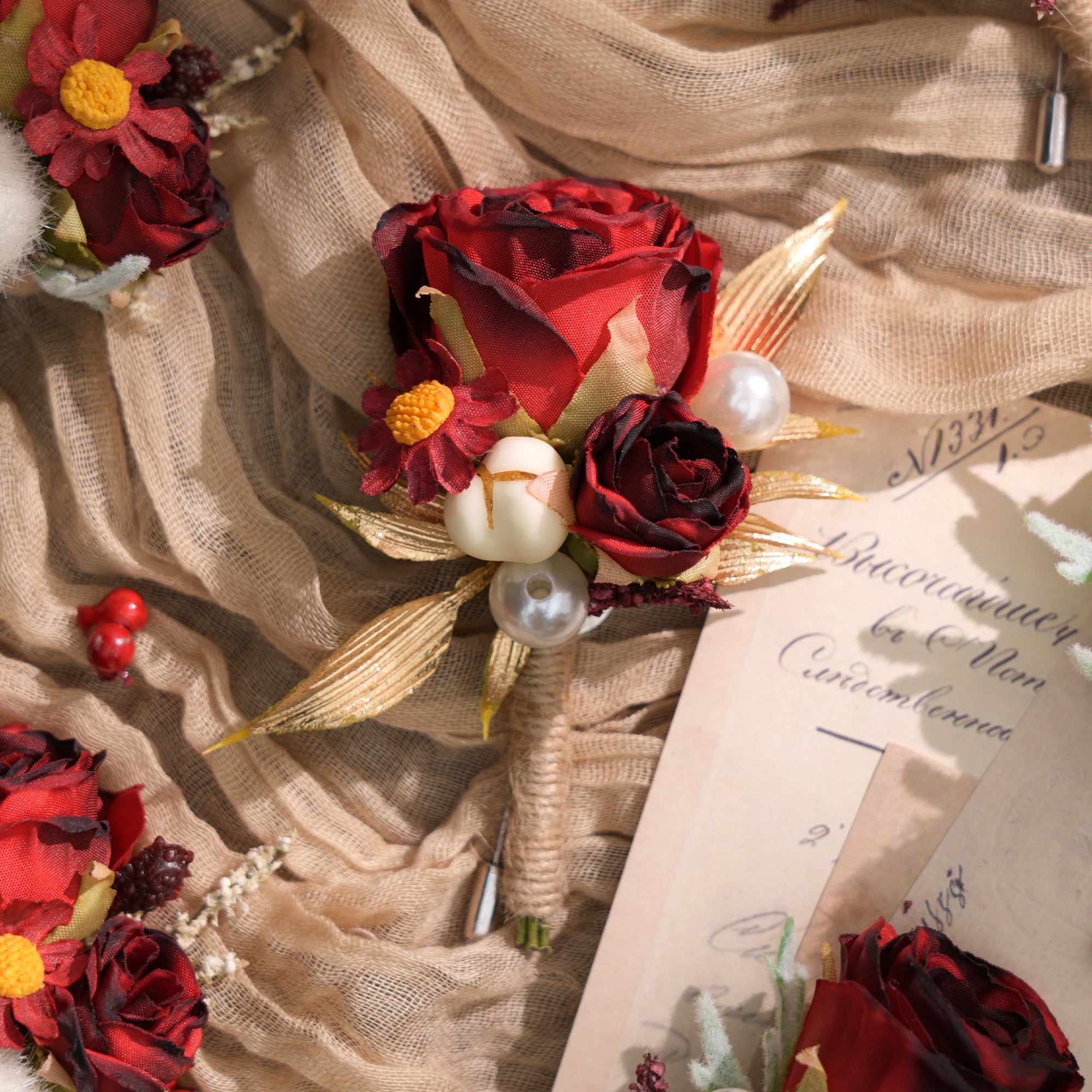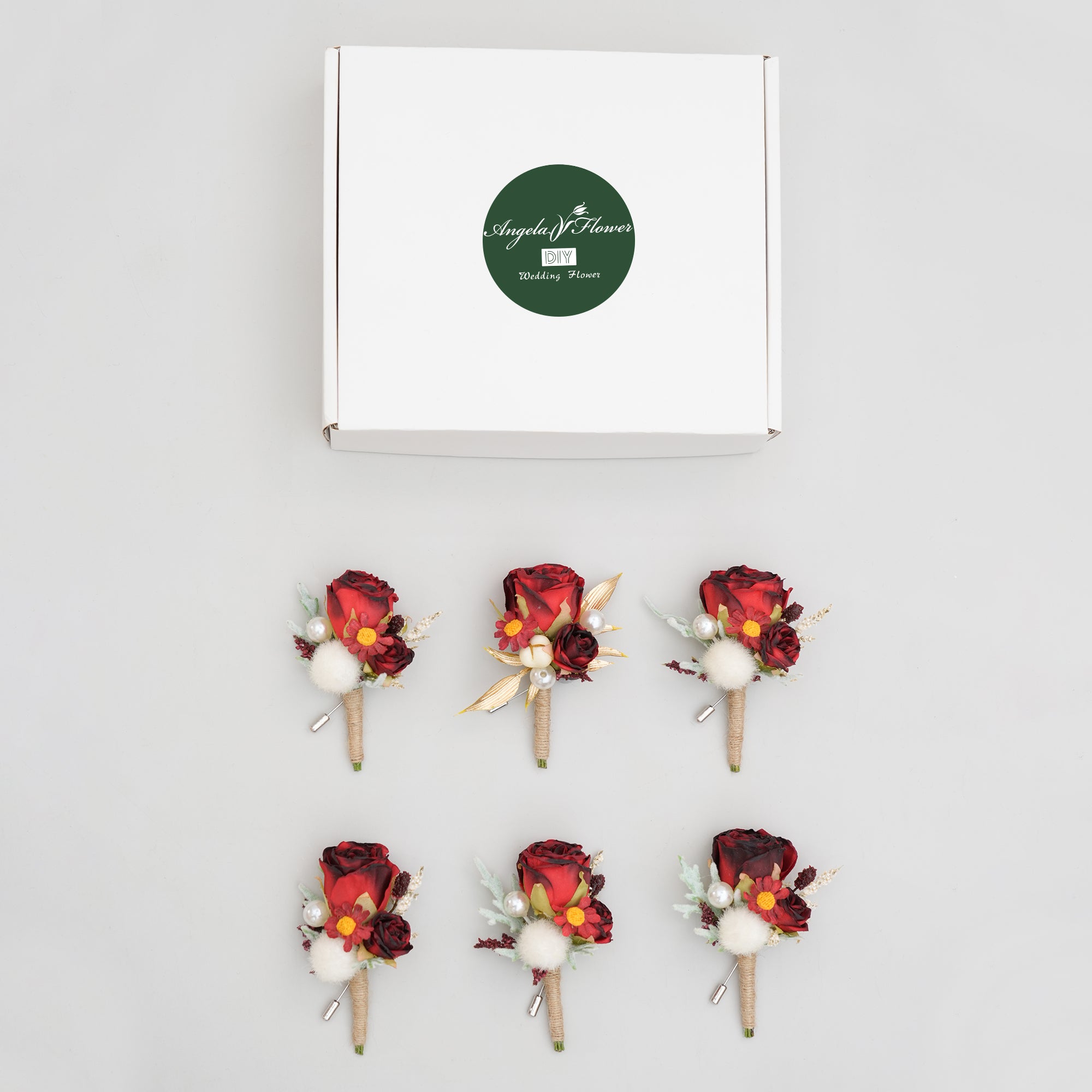 A9024 6pcs/set Red Rose Dried Boutonniere For Men Wedding Accessories