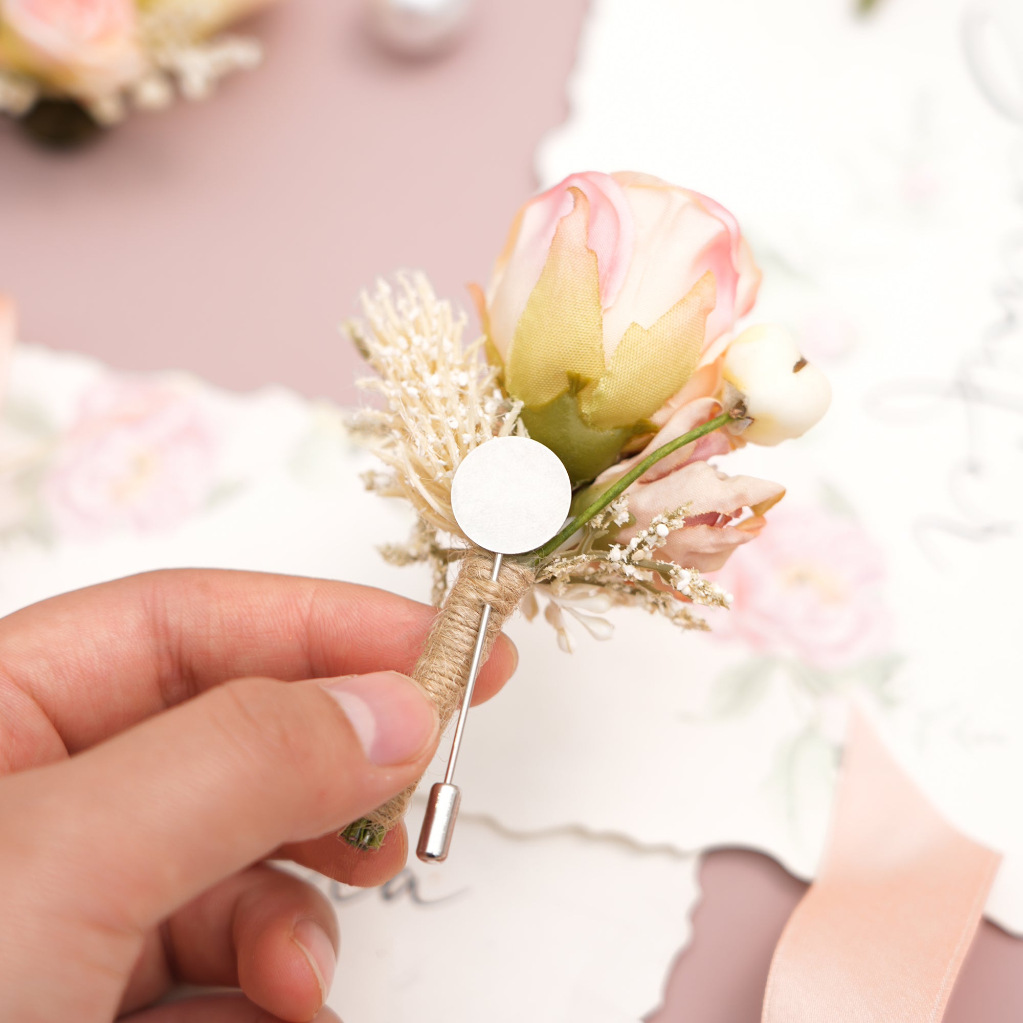 A9023 6pcs/set Pink Rose Dried Boutonniere Wedding Anniversary Event Props
