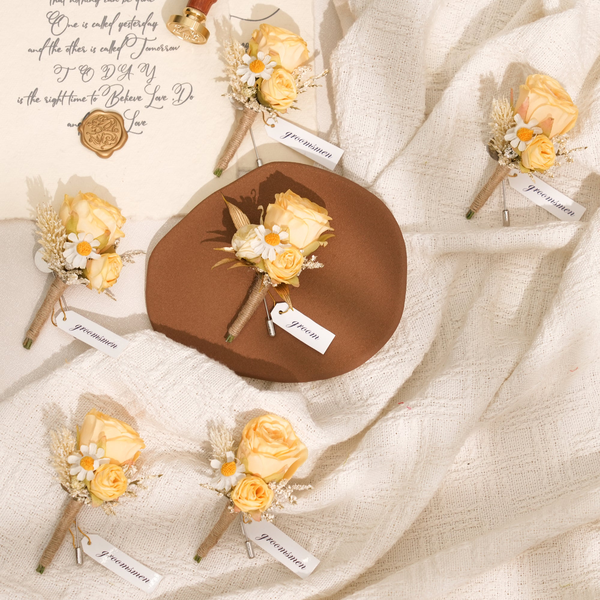 A9025 6pcs/set Champagne Rose Corsage Groomsmen Accessories Wedding Supplies