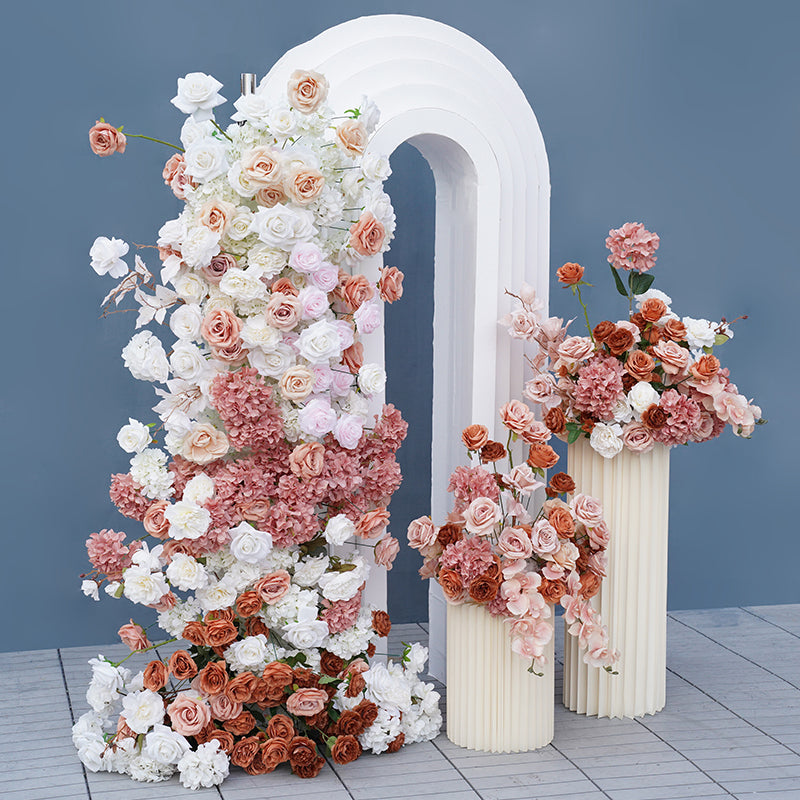 A8151 Wedding Backdrop KT Board Arch Decor Brown White Floral Arrangement