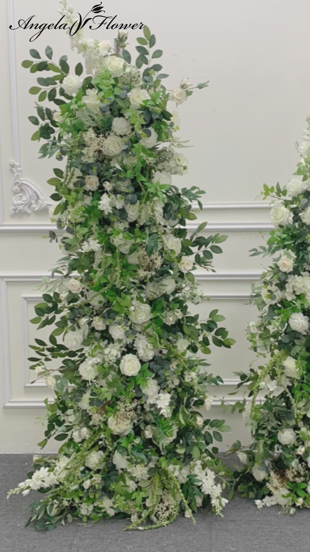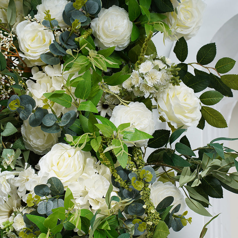 A7702 White Rose Green Leaves Wedding Backdrop Arch KT Board Decor Floral Arrangement