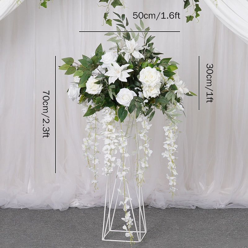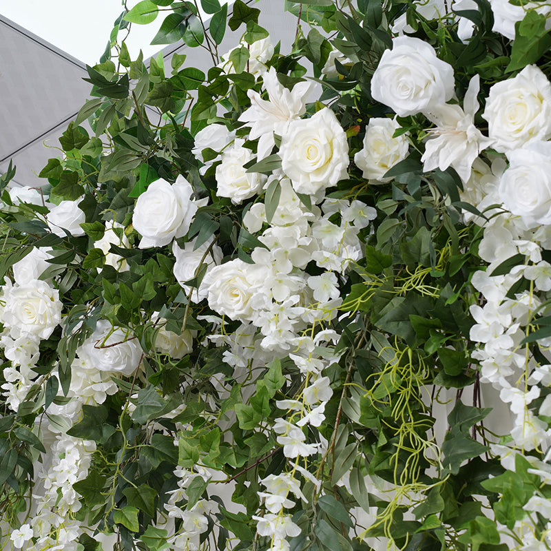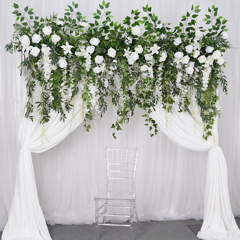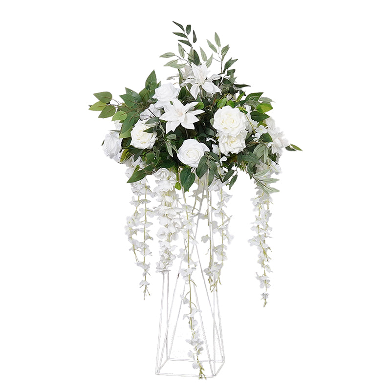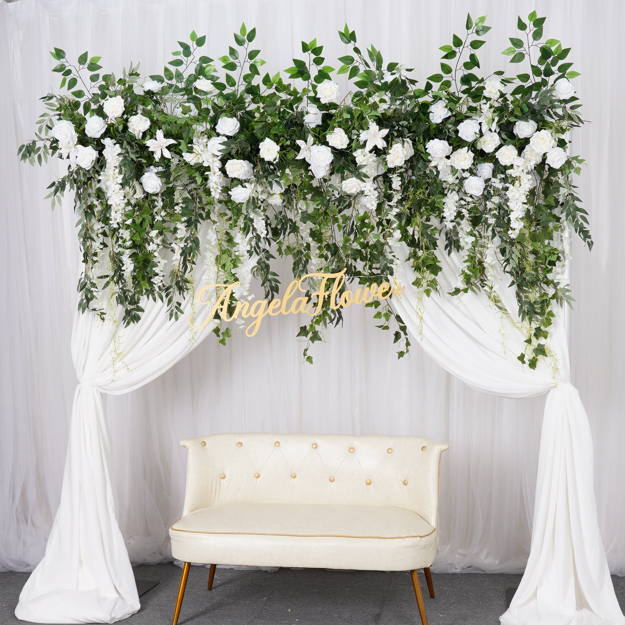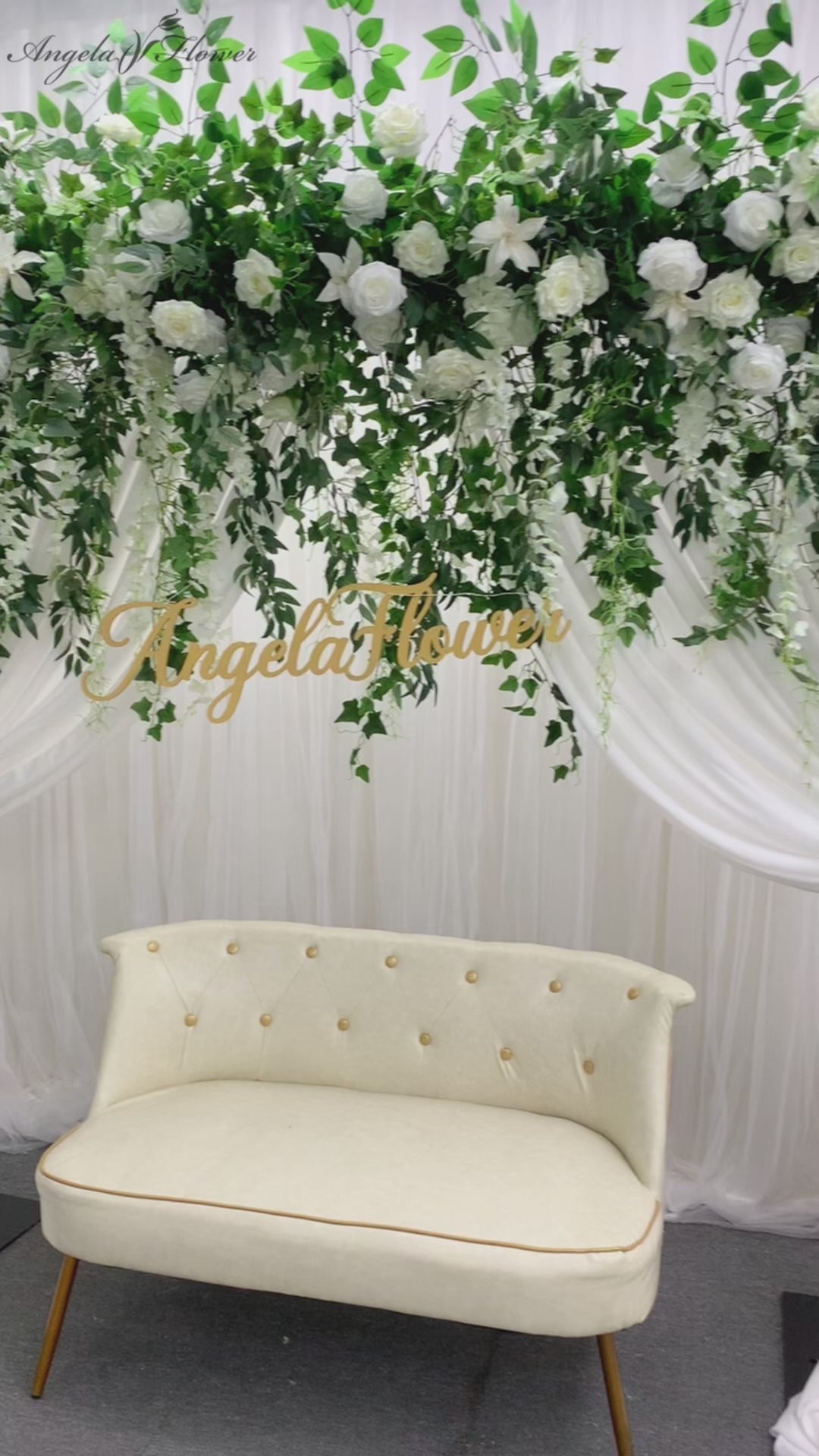 A7799 White Rose Green Leaves Hanging Floral Arrangement Wedding Background