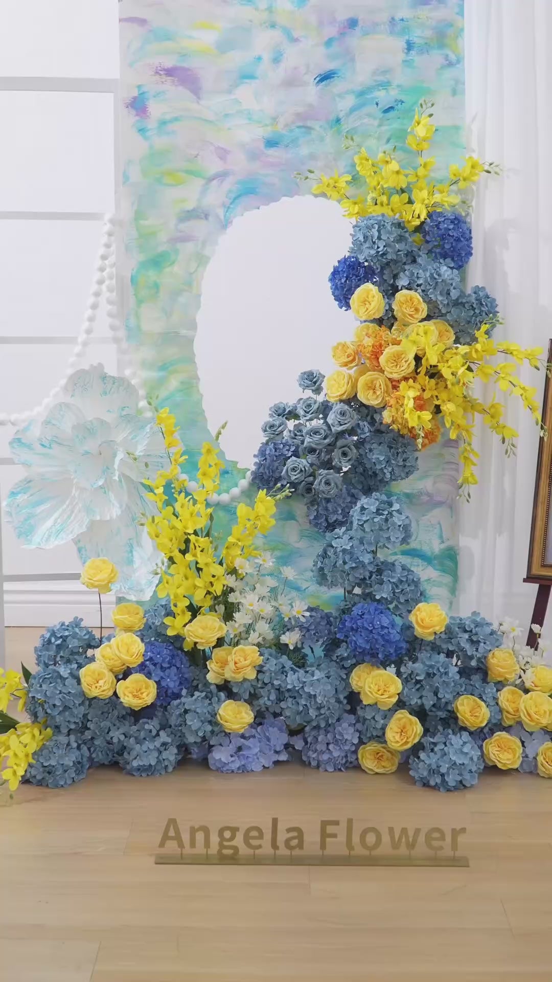 Color Inspiration: Featuring lush blue hydrangeas paired with vibrant yellow accent blooms, this hang flowwer and aisle flower combination evokes the rich texture and emotion of a classic oil painting. Perfect for adding a touch of refined elegance to weddings, parties, or everyday décor.