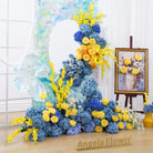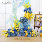 A9019 Luxury Blue Yellow Hydrangea Flower Arrangement Wedding Backdrop Aisle Decor