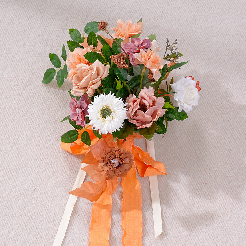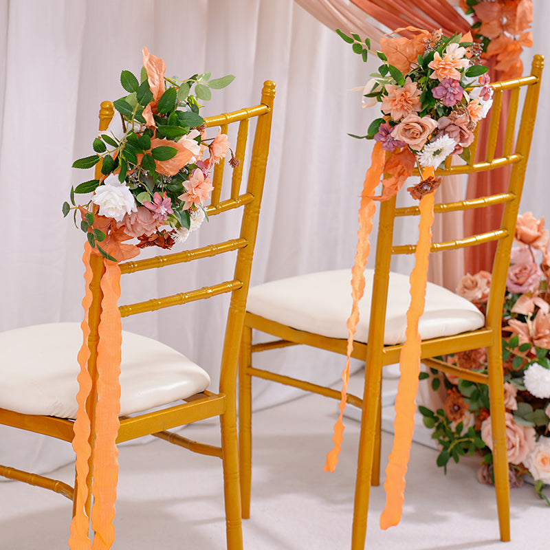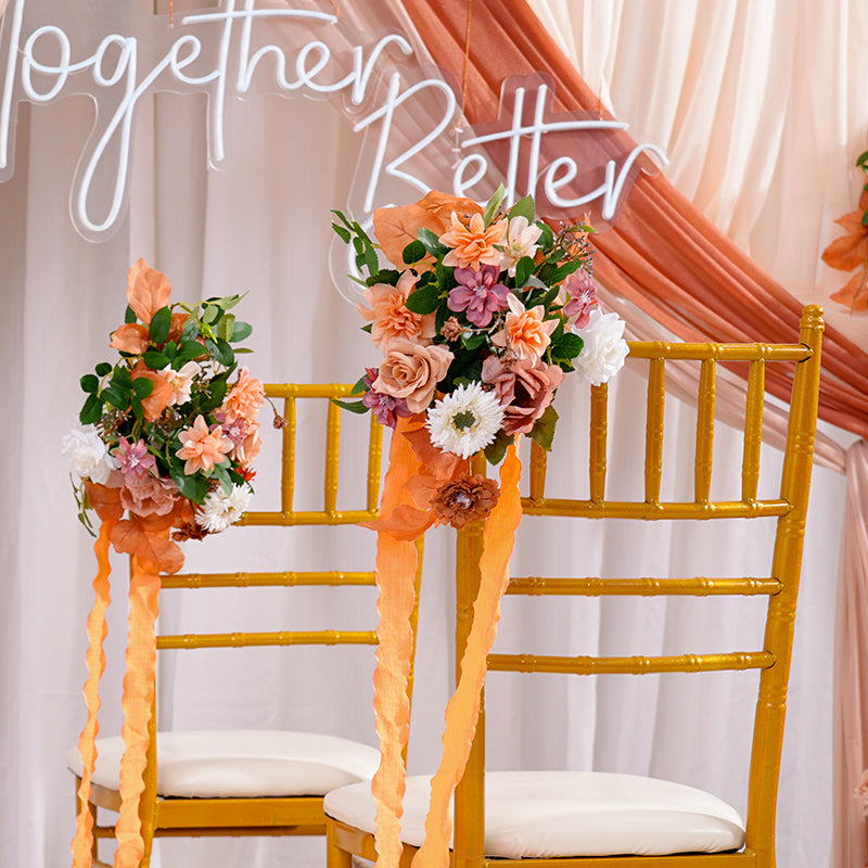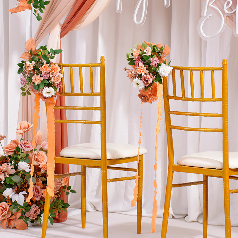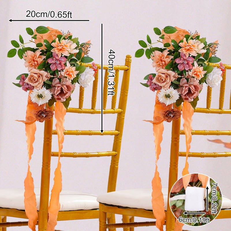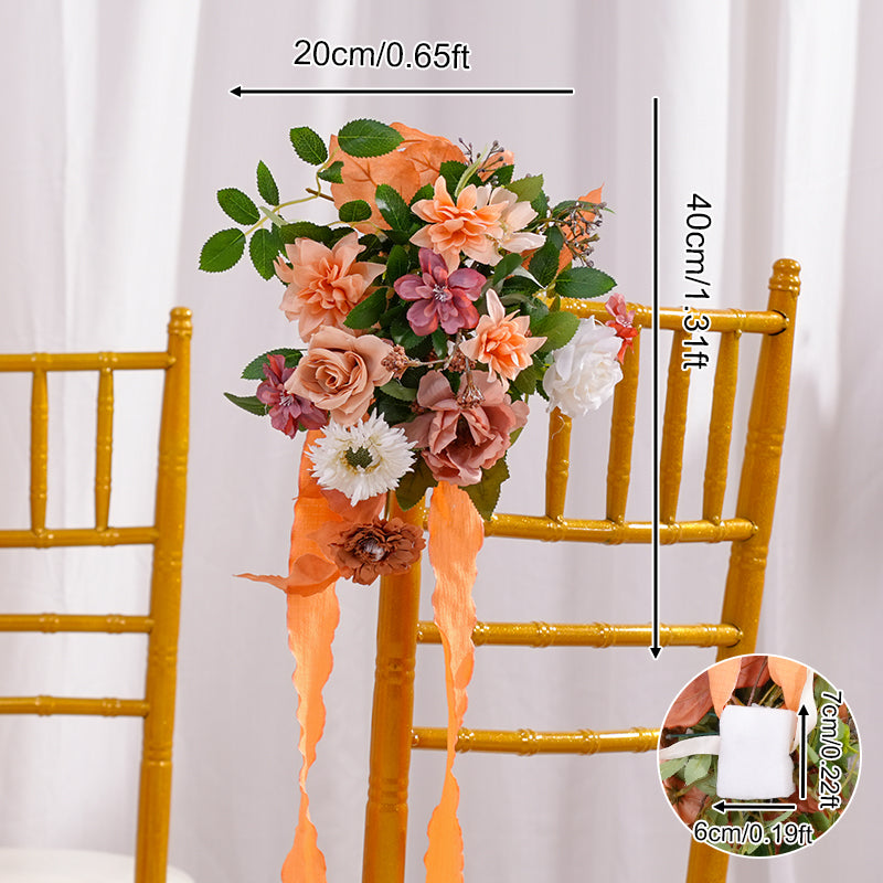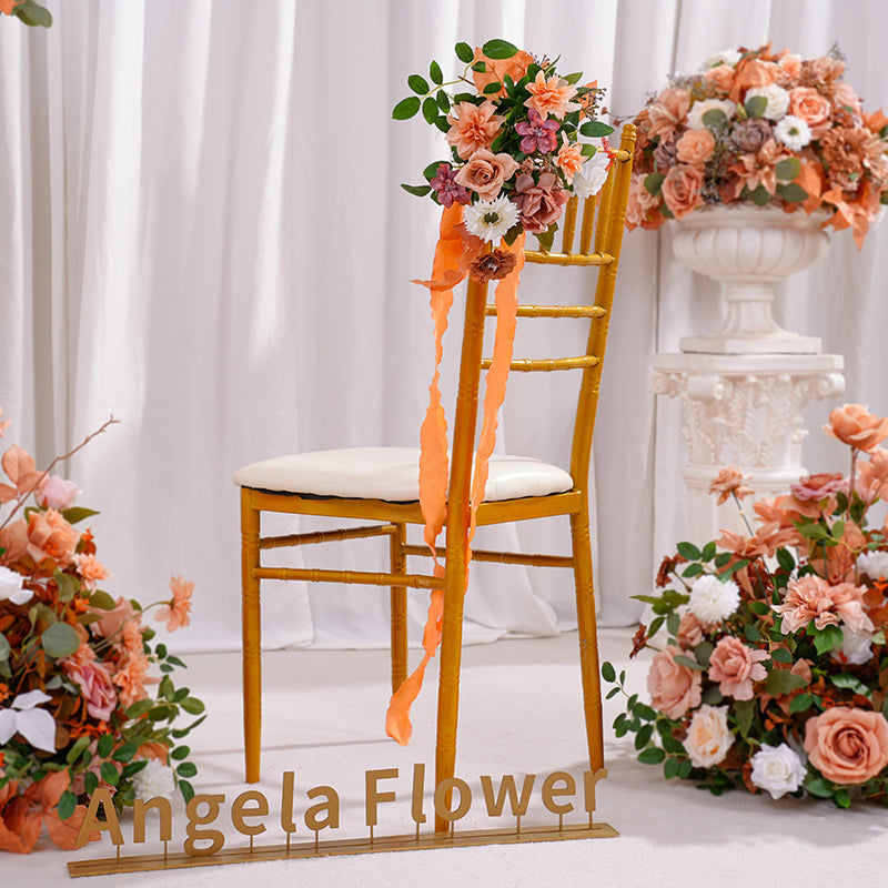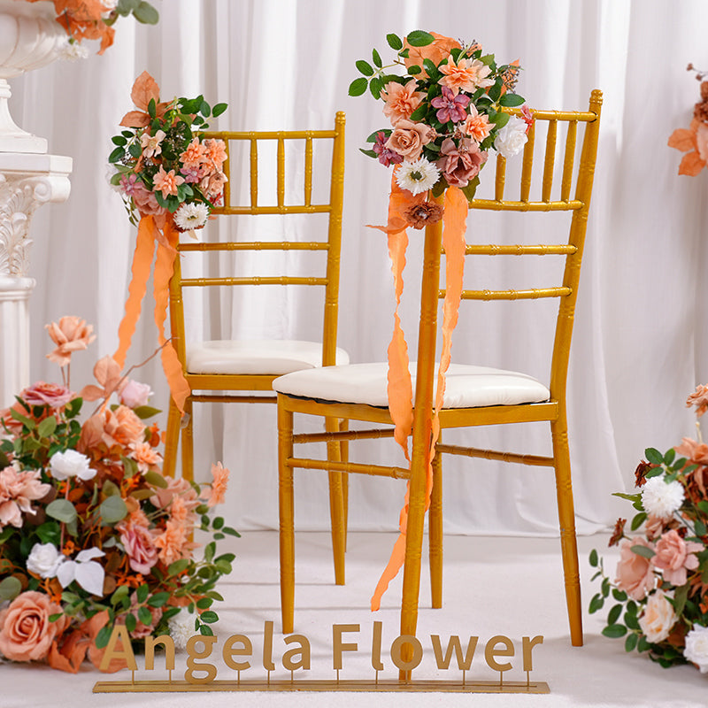 A866410 Coffee White Rose Dahlia Green Leaf Chair Flower Wedding Decor Supplies