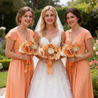 Color Inspiration: Embrace earthy elegance with our handcrafted coffee & brown floral bouquets. Perfect for brides and bridesmaids, these bouquets feature a stunning blend of coffee-toned roses, rich brown accents, and delicate blooms. Their neutral palette complements any wedding theme, adding a touch of rustic charm.
