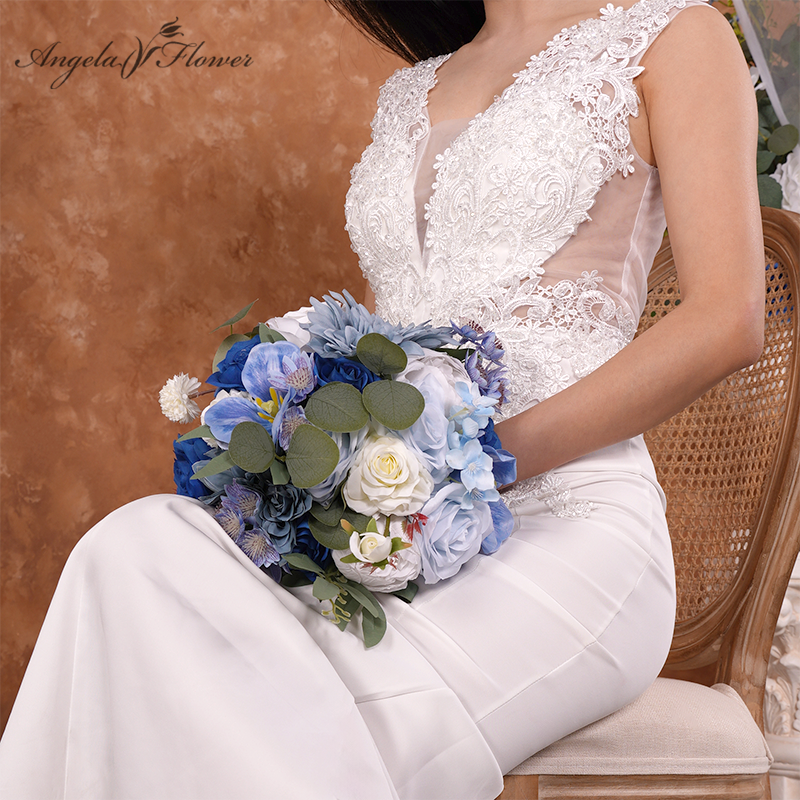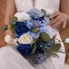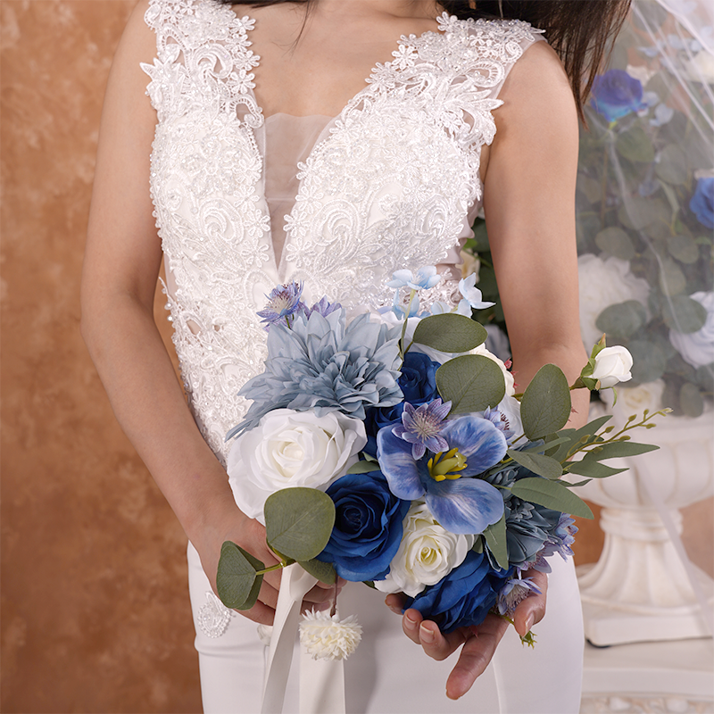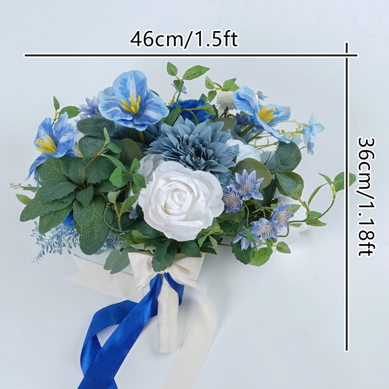 A8634 Blue White Series Greenery Bridal Bouquet Wedding Floral Arrangement