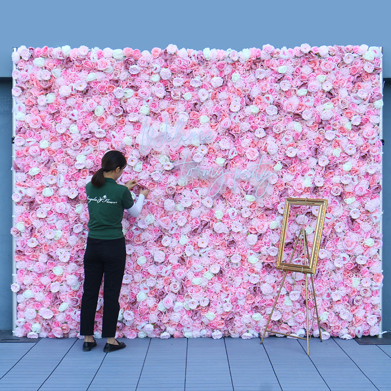 5D Pink Flower Wall Wedding Backdrop Decor Prop Plant Wall A114 A7432