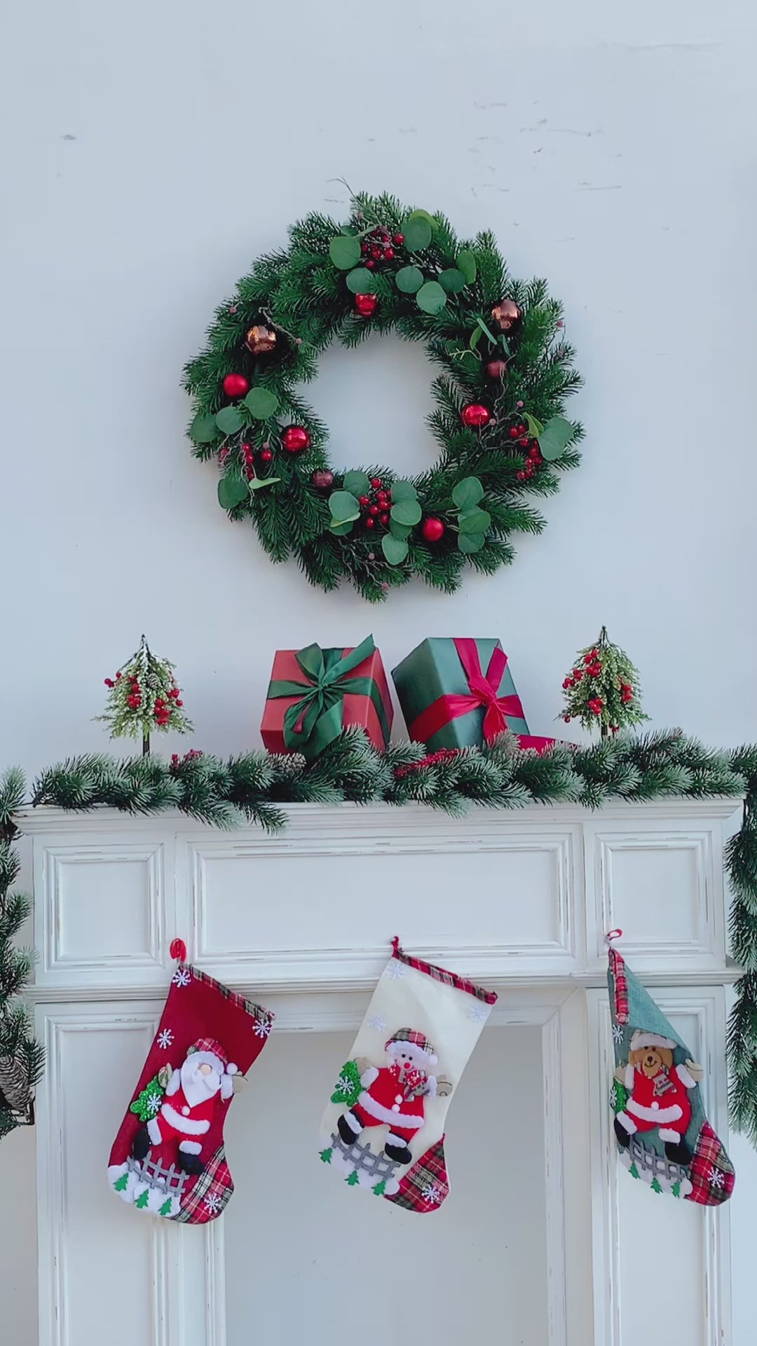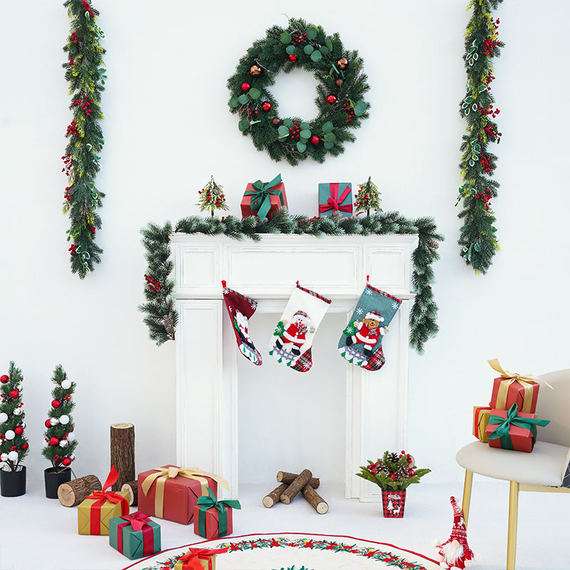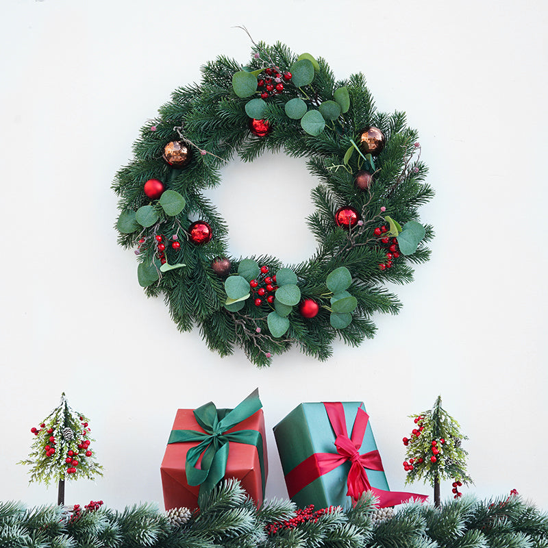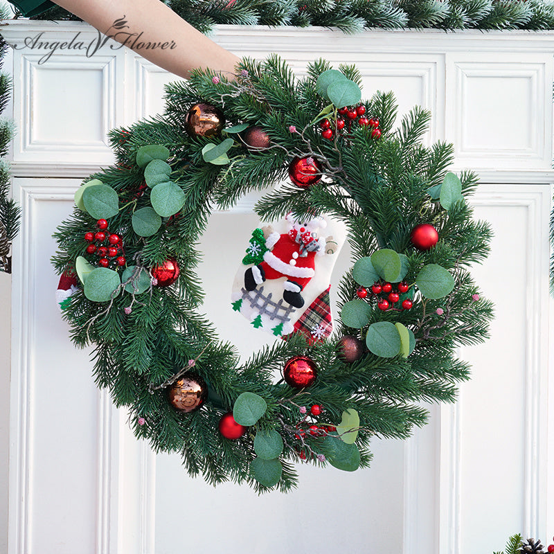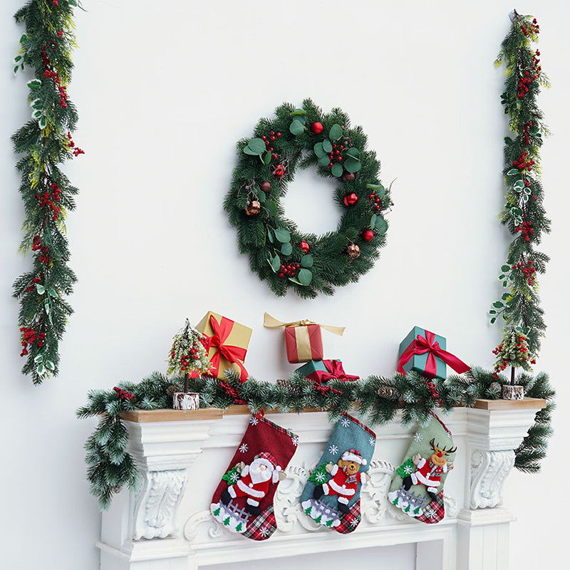60cm/1.96ft Eucalyptus Leaves Red Berry Christmas Garland Wall Hangings SD0458