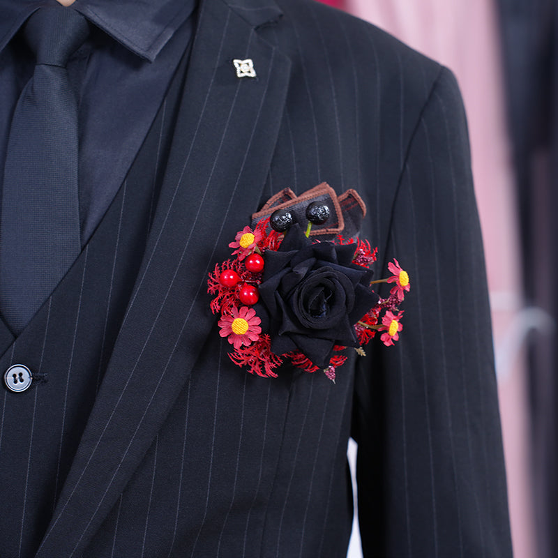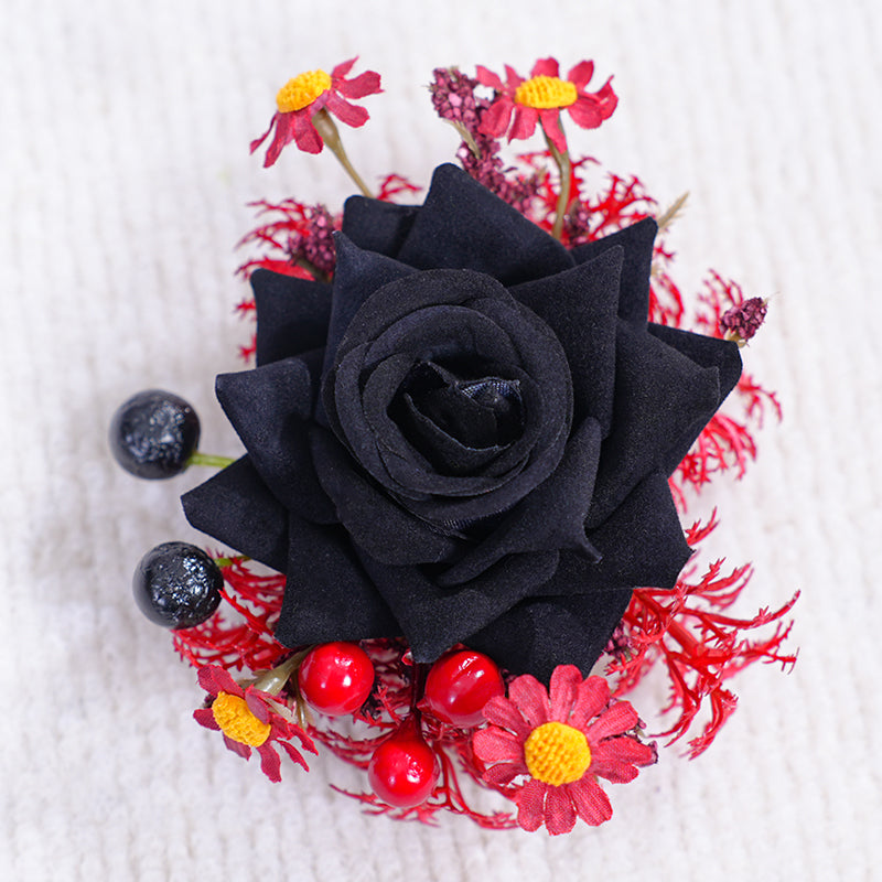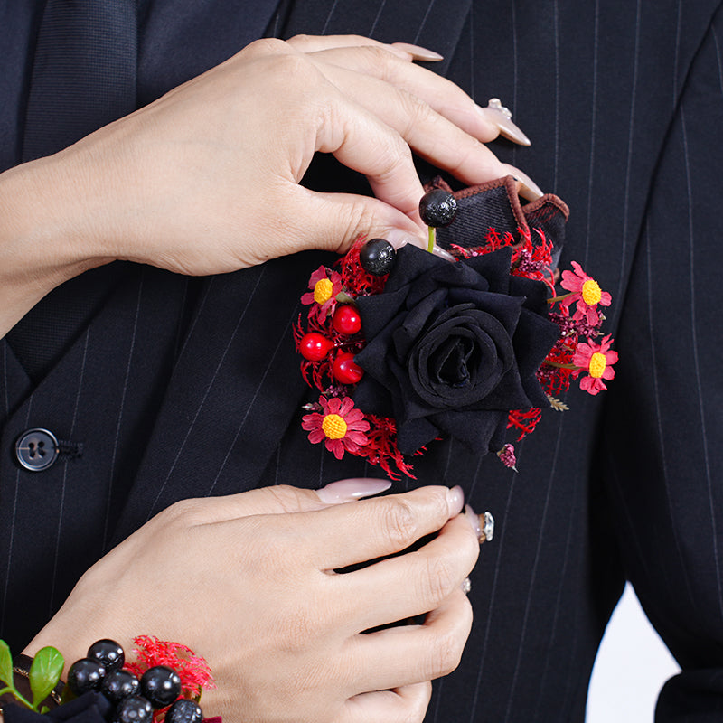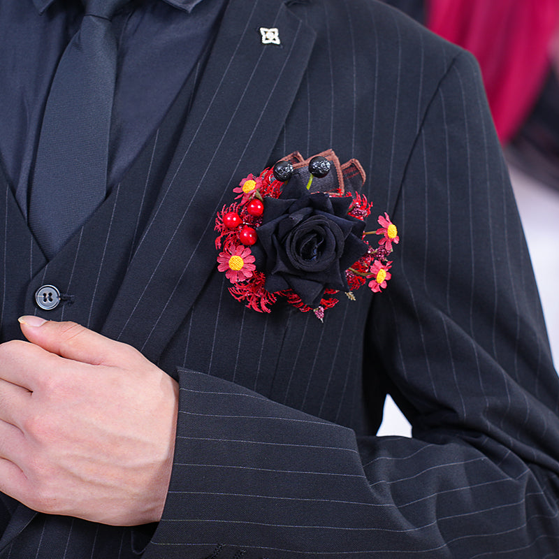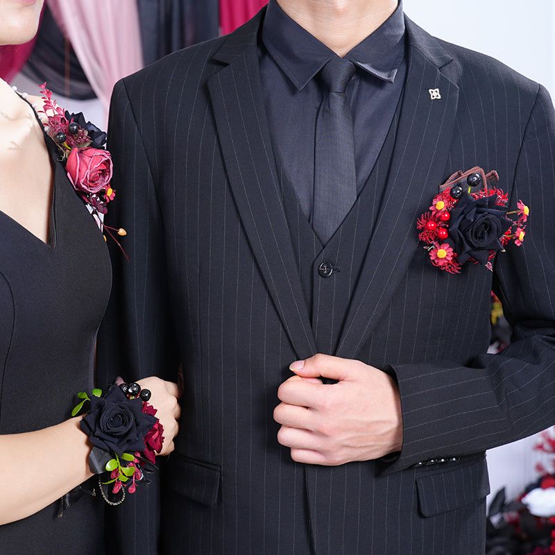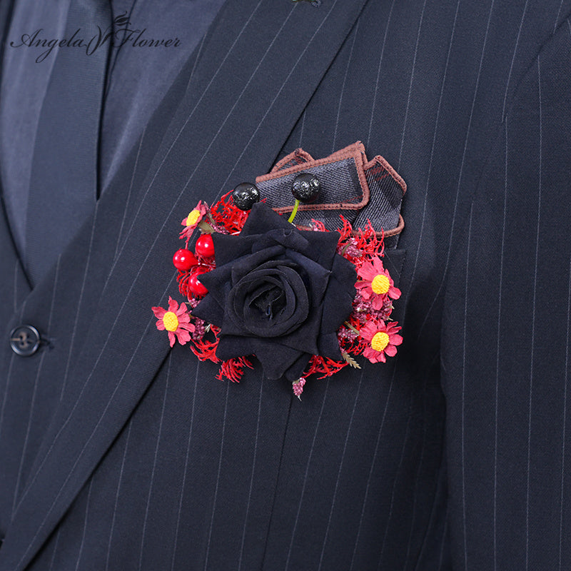 A865406 Black Burgundy Series Corsage Flower Wedding Party Bridegroom Supplies