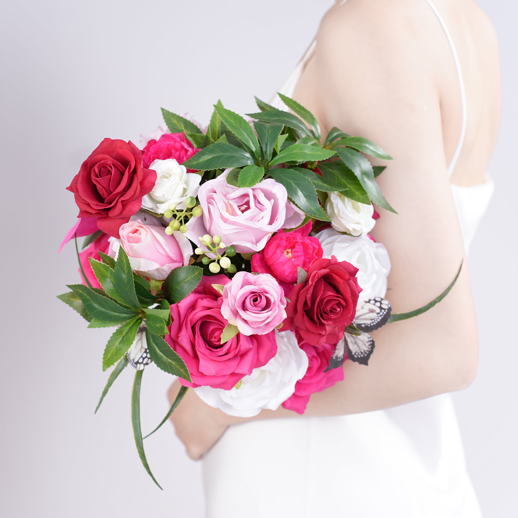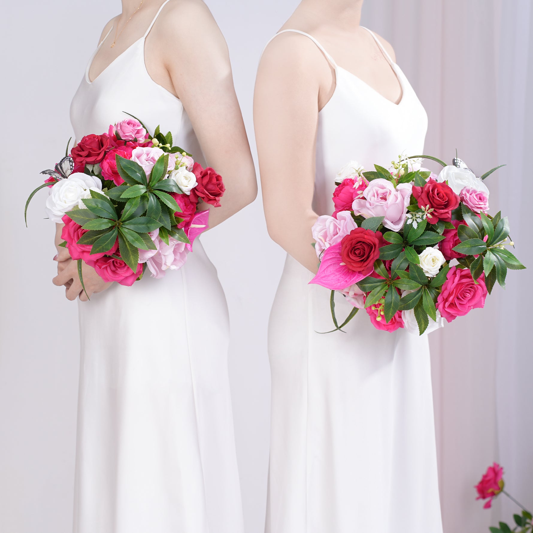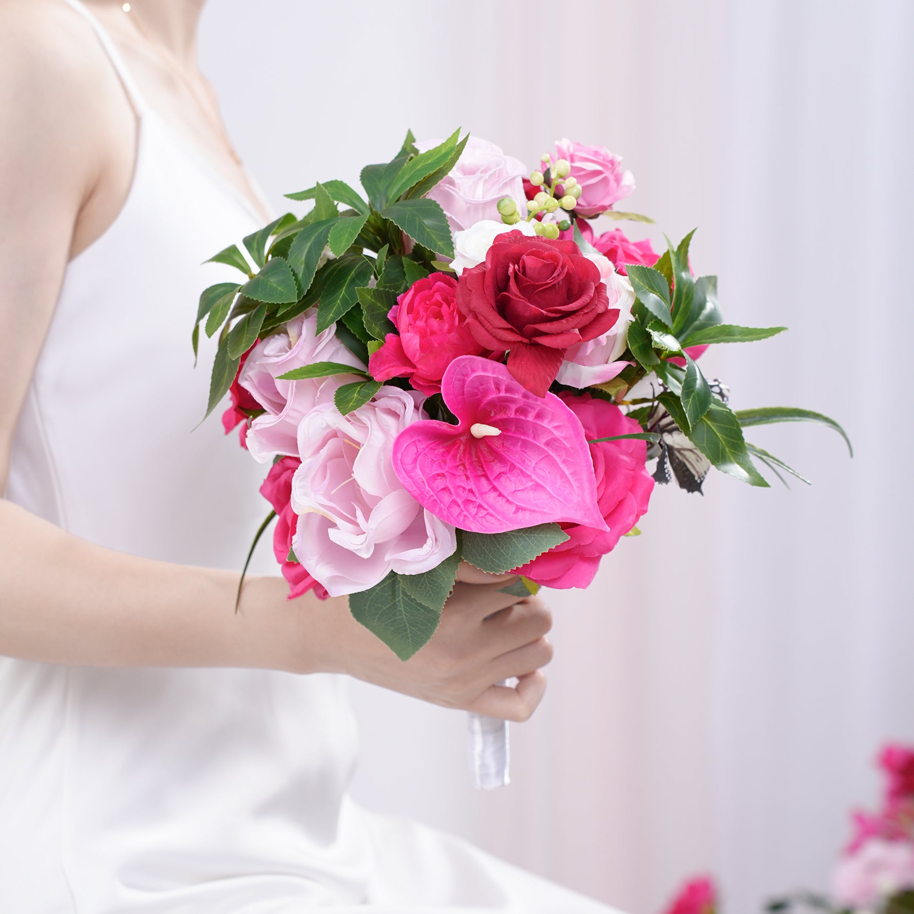 A866304 Hot Pink Hand Bouquet Wedding Bridesmaid Floral Supplies