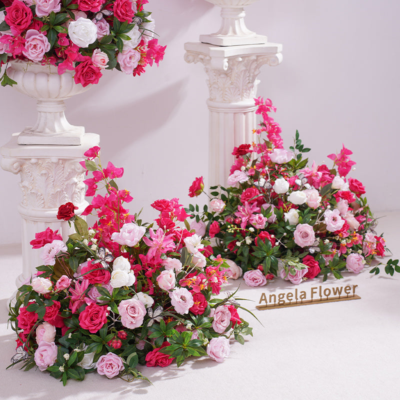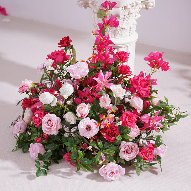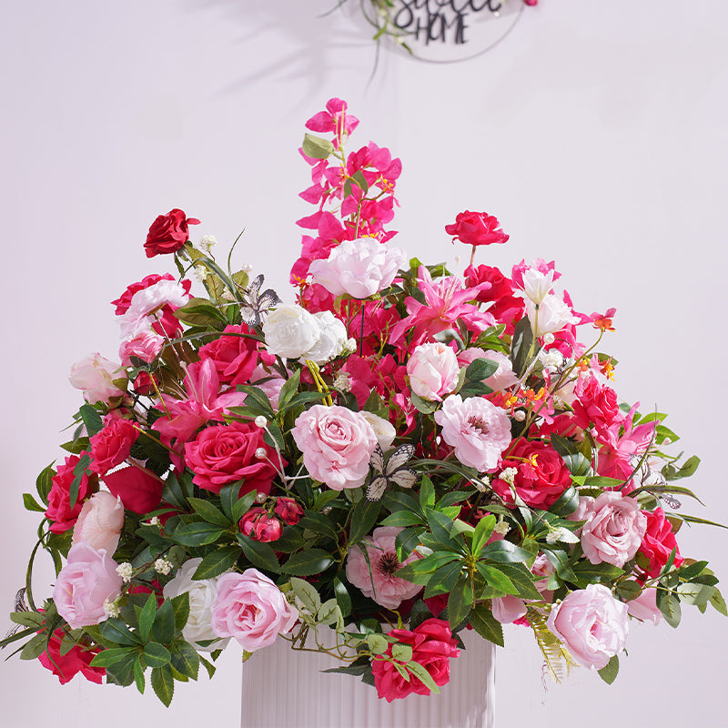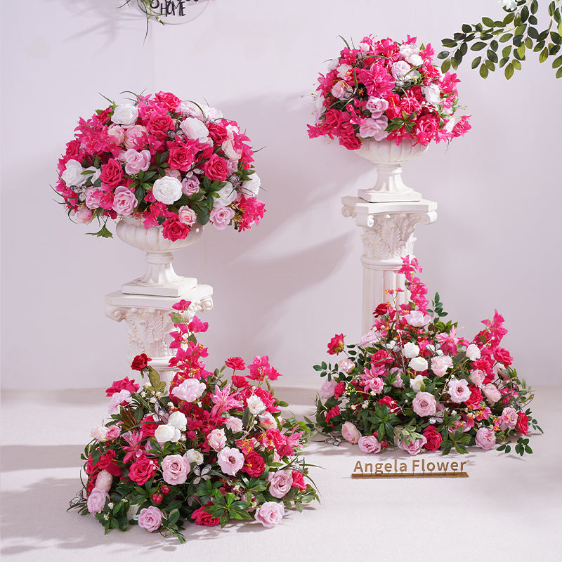 A866316 Hot Pink Series Rose Greenery Floor Flower Arrangement Wedding