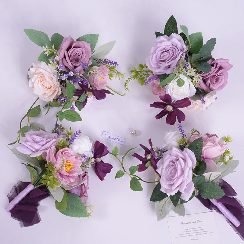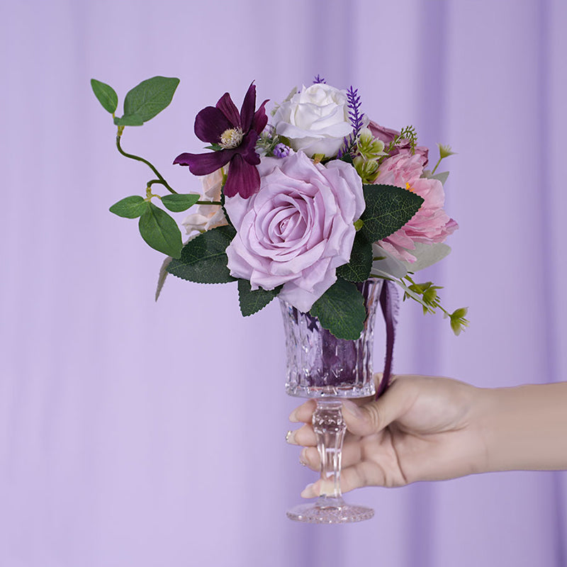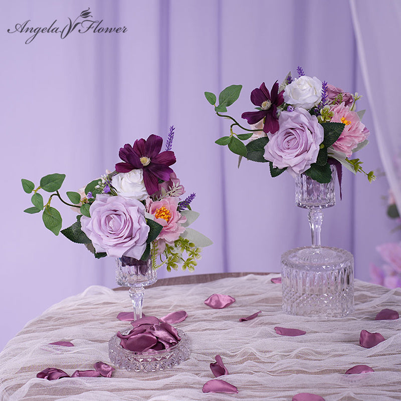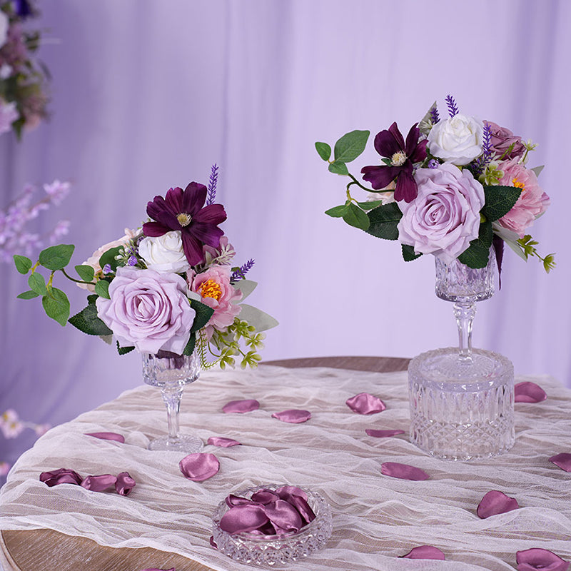A865303 Purple Series Flower With Vase Arrangement Wedding Event Props