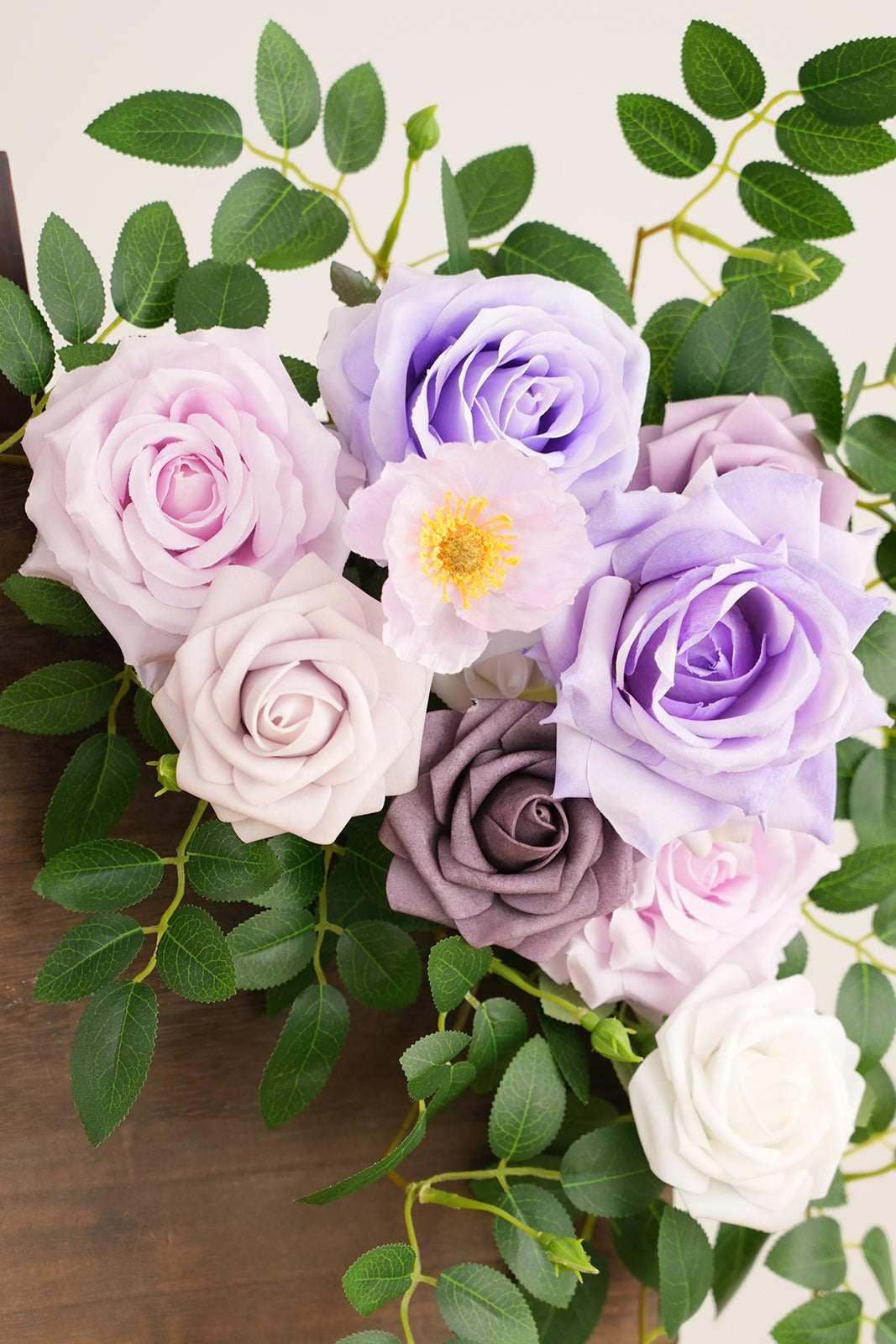 Color Inspiration: This purple flower and greenery set offers a modern and stylish welcome. The varying shades of purple create depth and visual interest. Enjoy the beauty of flowers without the maintenance. These artificial pieces are durable and long-lasting, perfect for any occasion. A beautiful and hassle-free solution.