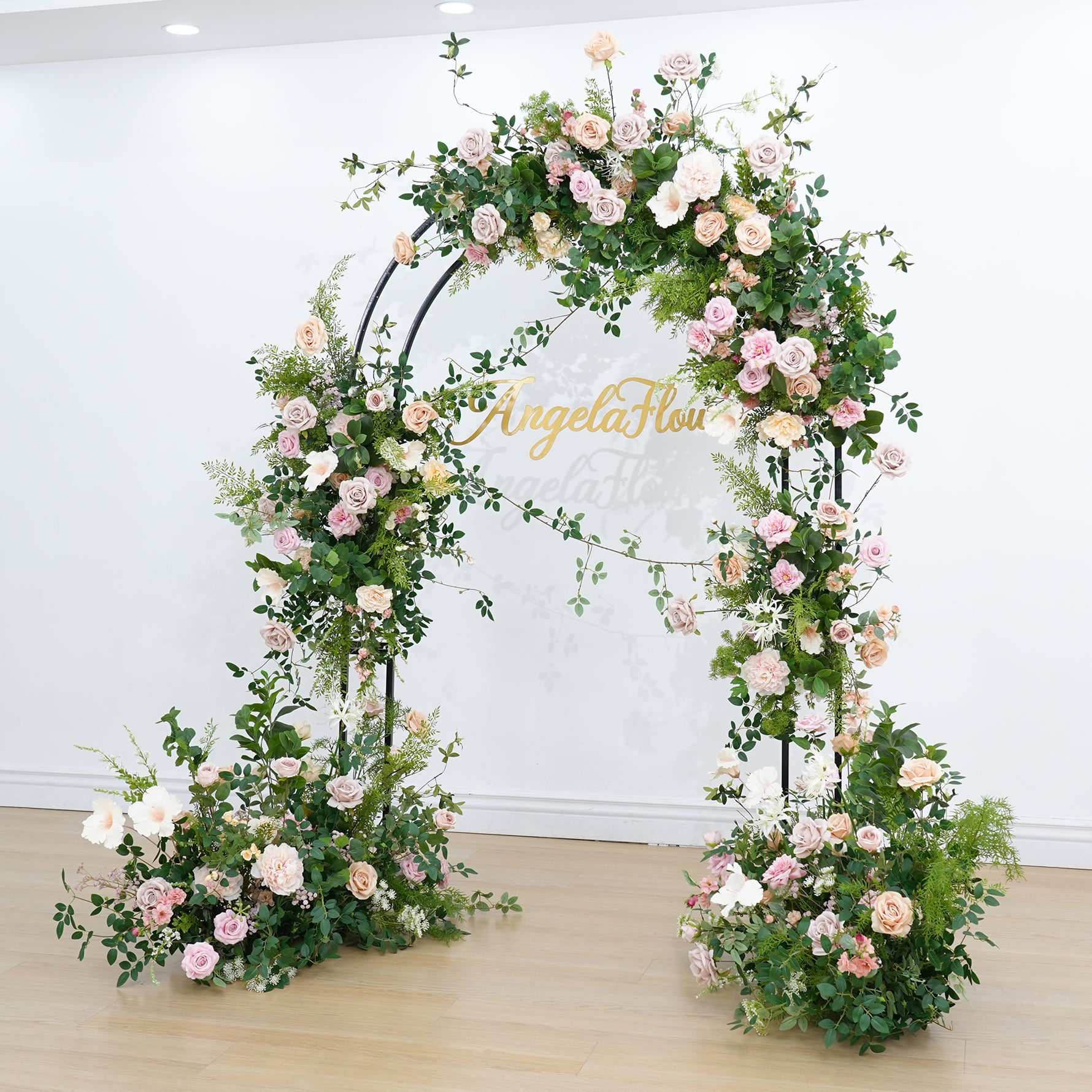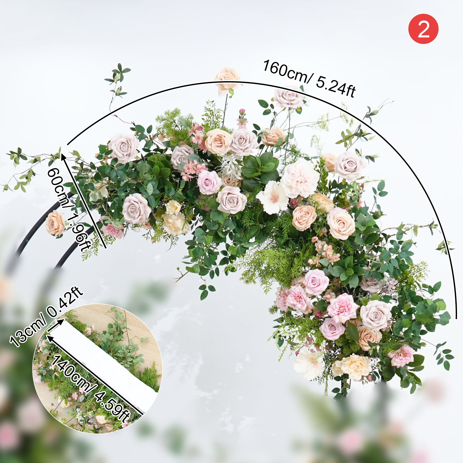 Color Inspiration: Flower arrangements are inspired by forest wedding, roses and lush green leaves can add a romantic atmosphere to the wedding. The flower arrangement is in shades of green, which harmonizes with the forest background, and is embellished with fresh pink flowers to bring the symbols of nature to your wedding.
