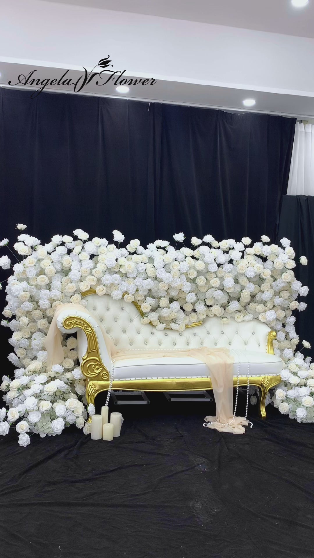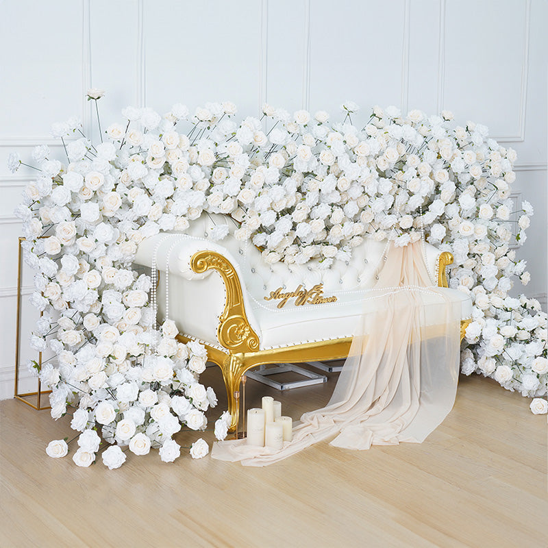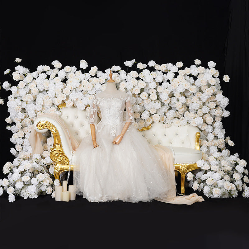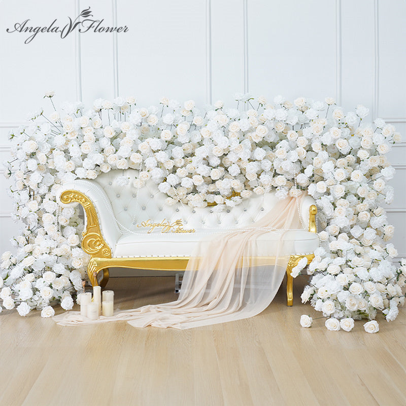 A8768 Wedding Backdrop Sofa Around Runner White Ivory Rose Floor Flower Row