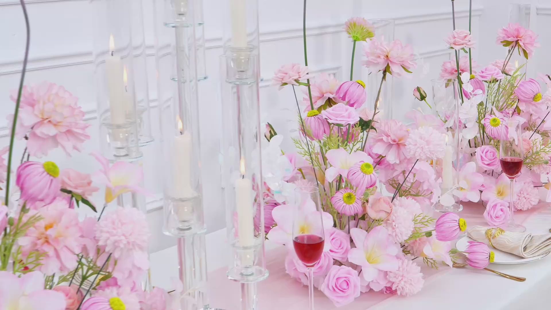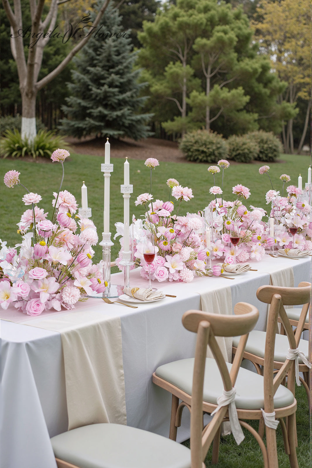 Color Inspiration: This mesmerizing pink table flower, like the scarlet color of a young girl's cheeks, conveys sweetness and tenderness, injecting a warm and romantic atmosphere into the wedding reception site. Not only can it be used as a sweet focal point in the center of the table, allowing guests to share the joy in the fragrance of the flowers, but it can also be staggered along the aisle, paving a dreamy floral path for the couple towards happiness.