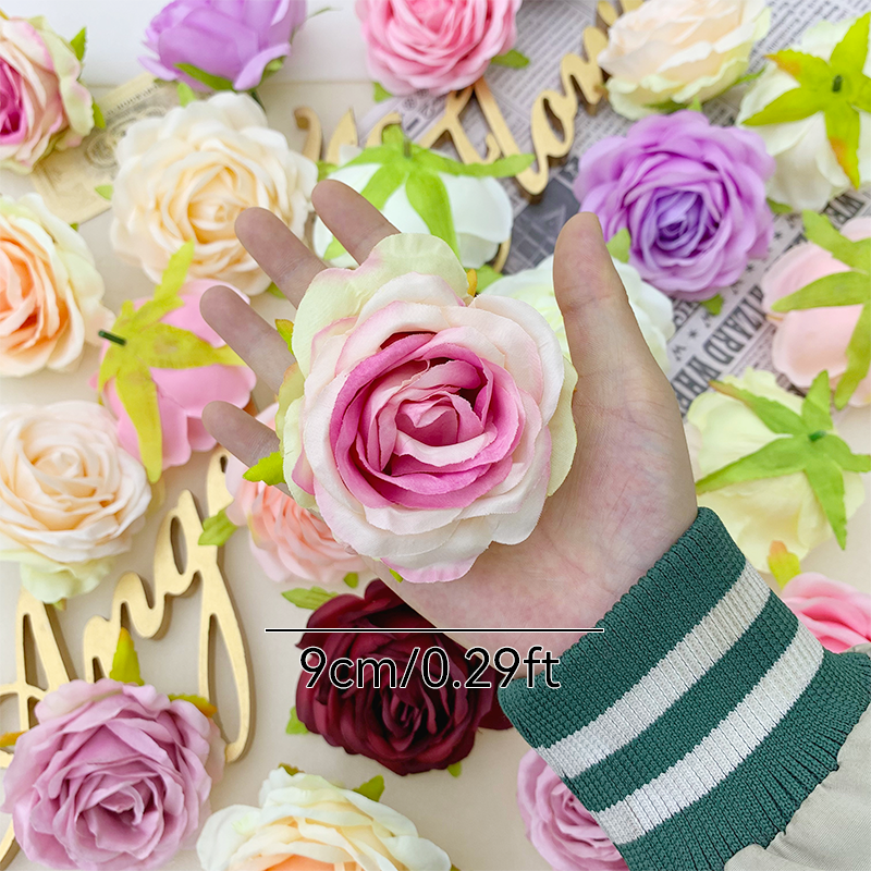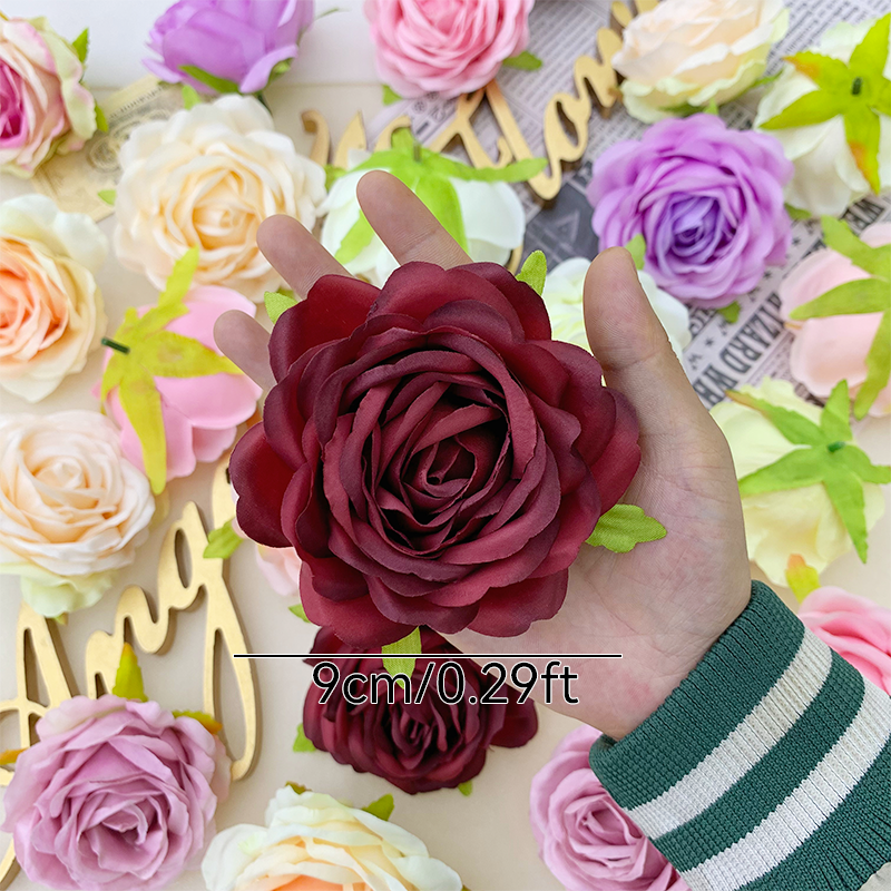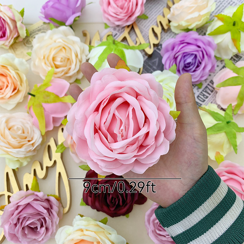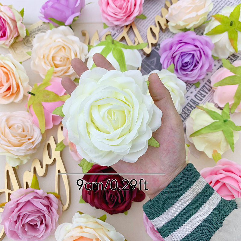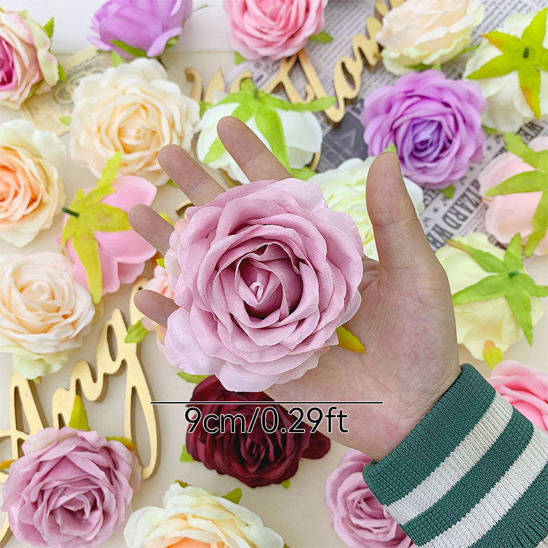 3 beoordelingenA5075 50Pcs 10cm Artificial Rose Flower Heads Wedding Floral Decor Material
