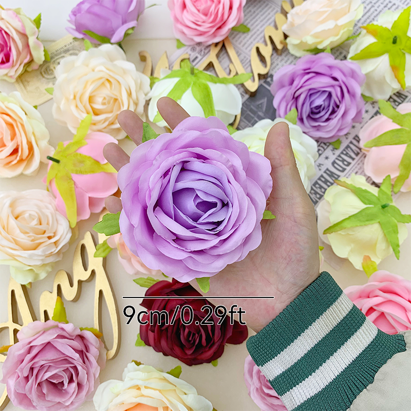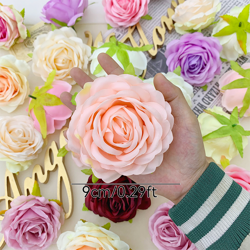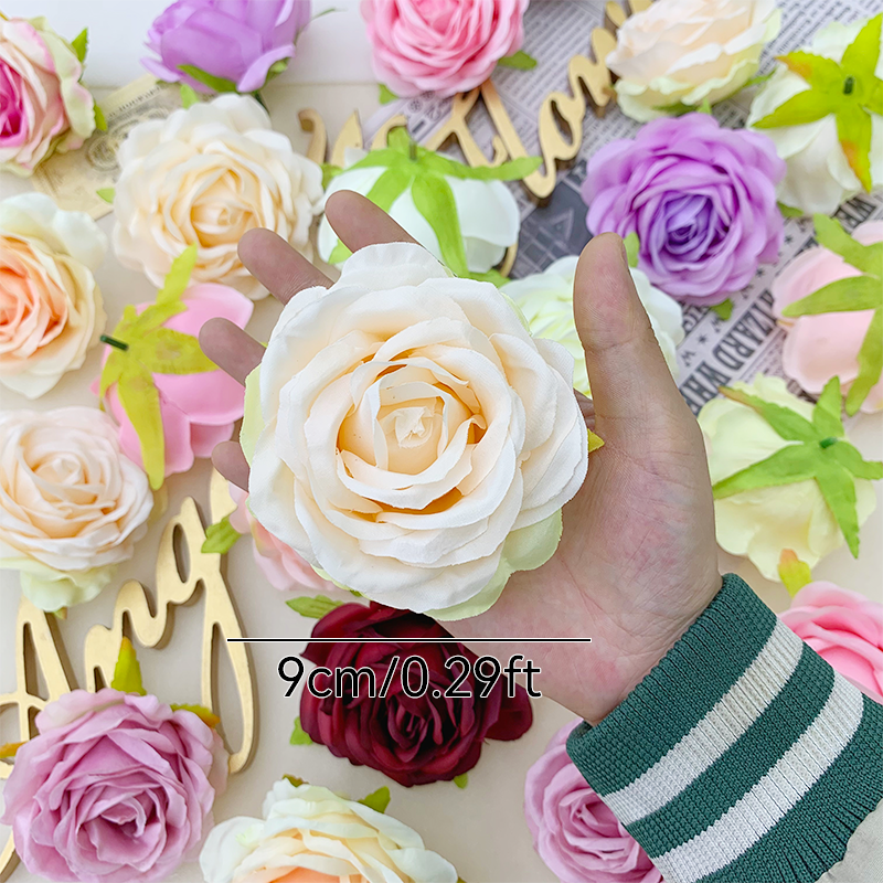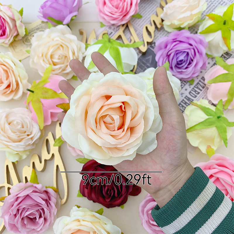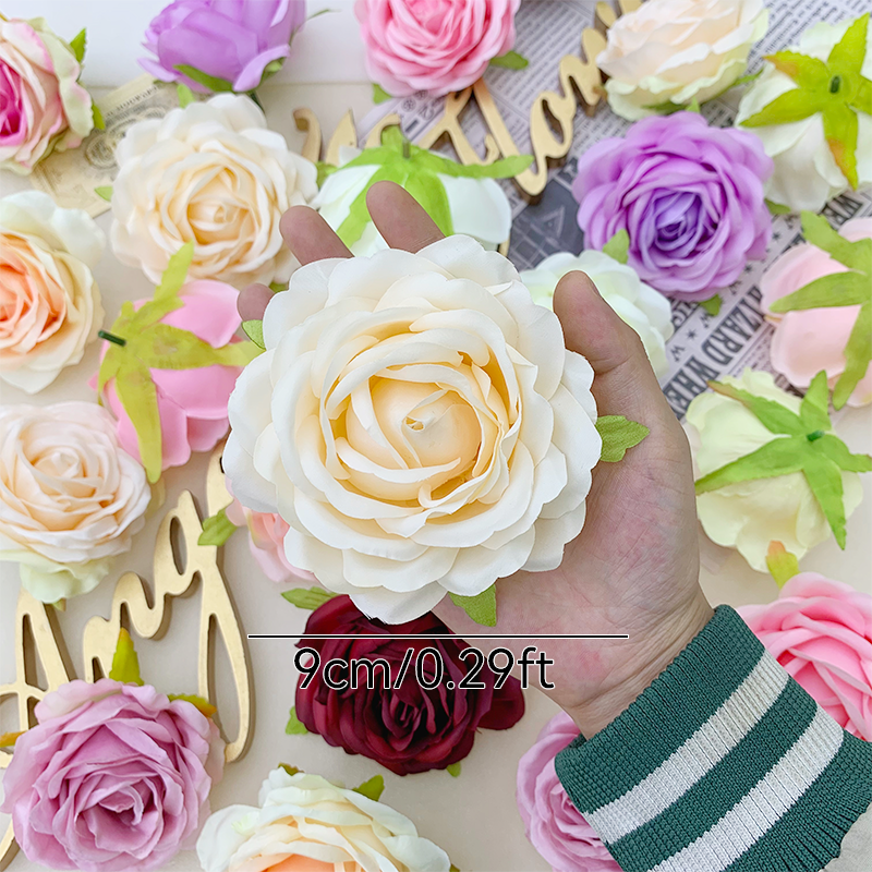 3 beoordelingenA5075 50Pcs 10cm Artificial Rose Flower Heads Wedding Floral Decor Material