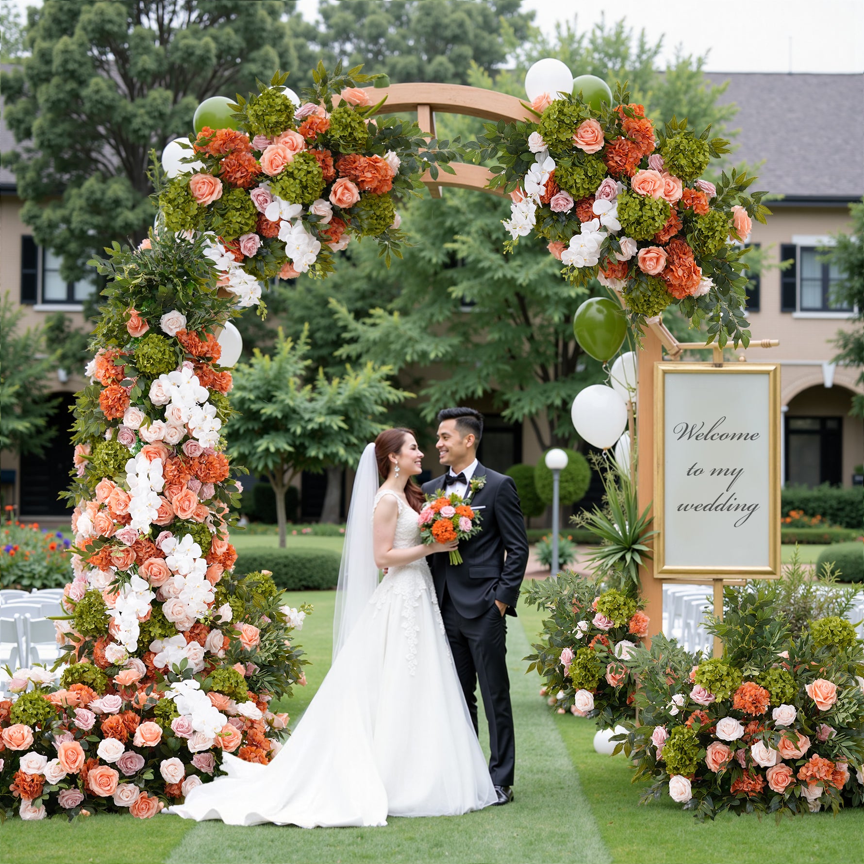 10 beoordelingenA8230 Hot Pink Orange Arrangement Wedding Backdrop Flower Arch Decor