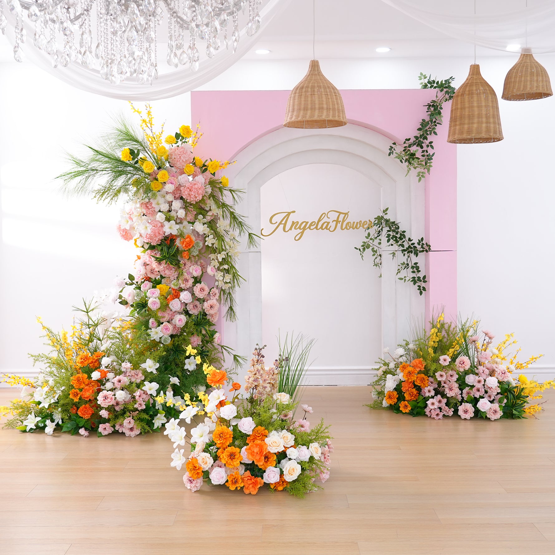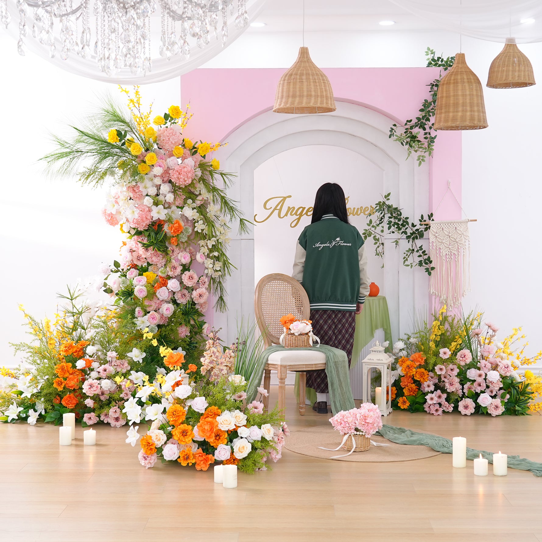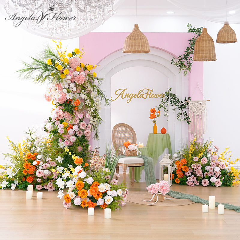 10 beoordelingenA8230 Hot Pink Orange Arrangement Wedding Backdrop Flower Arch Decor