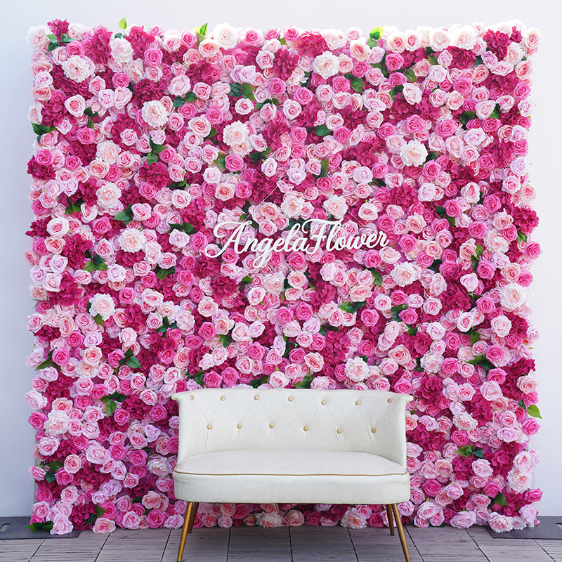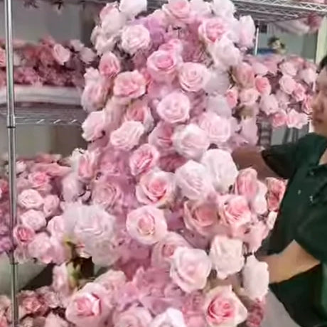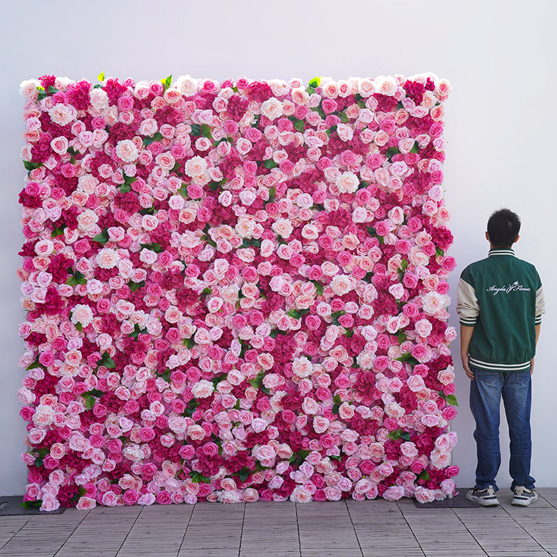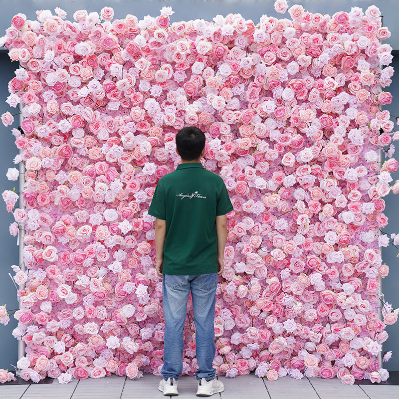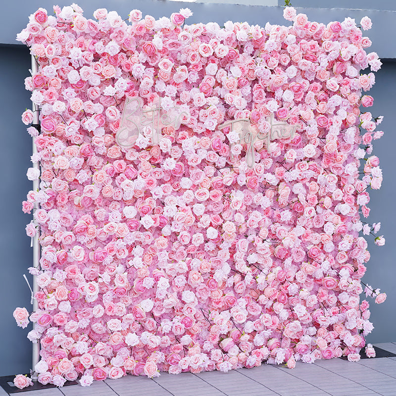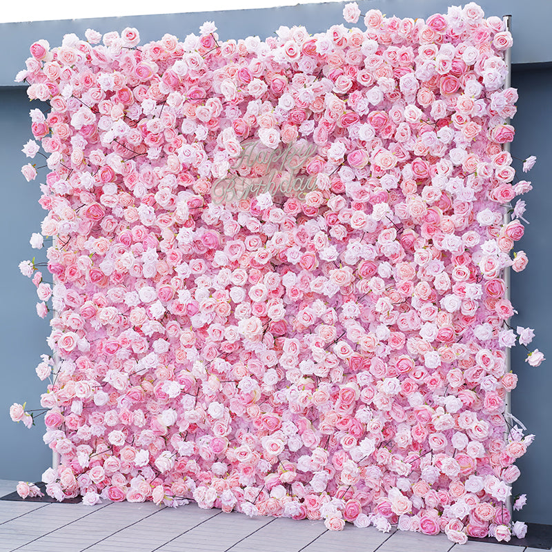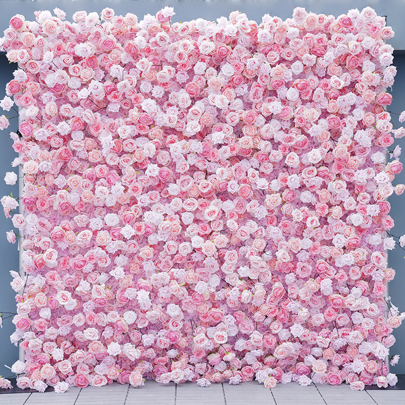 Pink White Gradient Rose 5D Flower Wall Wedding Backdrop Wall