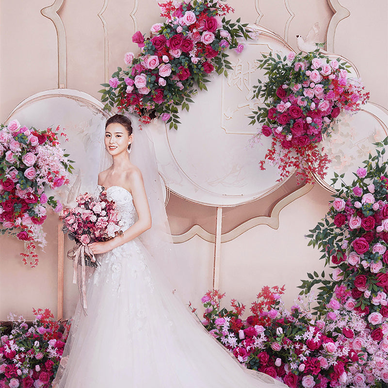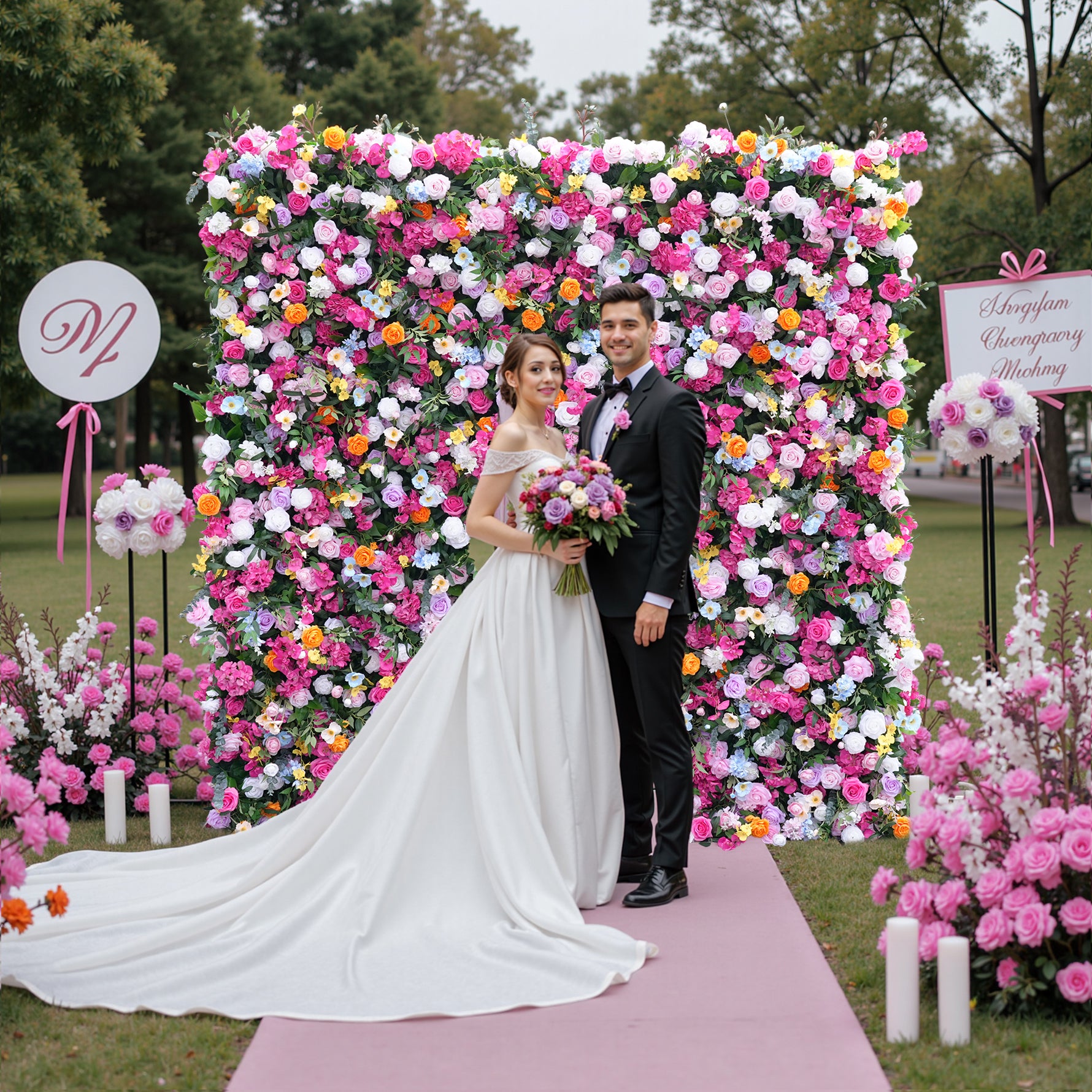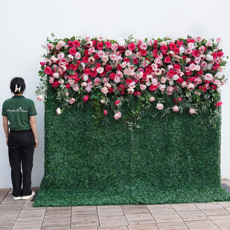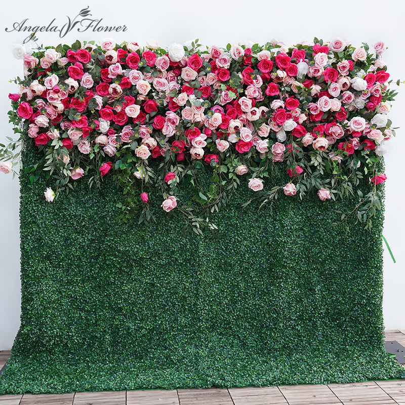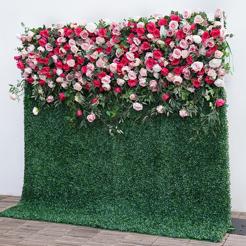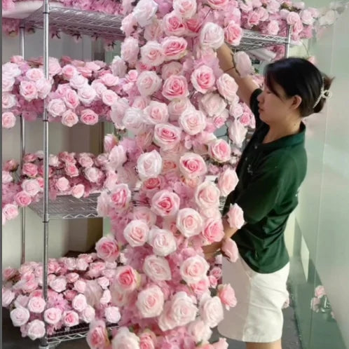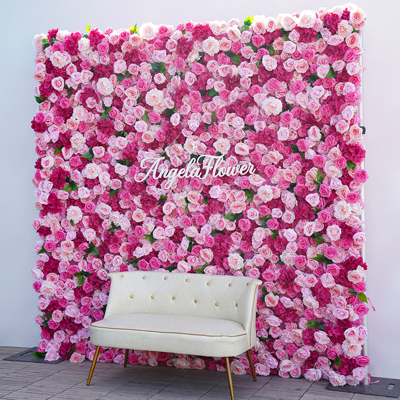 Pink White Gradient Rose 5D Flower Wall Wedding Backdrop Wall