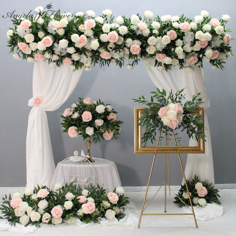 Pink White Gradient Rose 5D Flower Wall Wedding Backdrop Wall