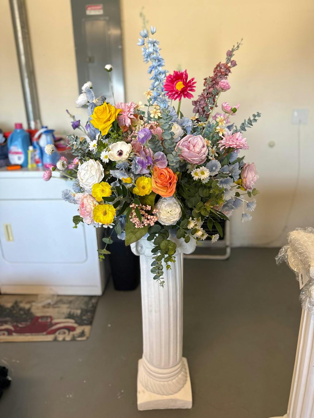 【Manual】: Due to shipping and packaging reasons, the artificial flowers may be squeezed, please use the steam or hair dryer to make the flowers stretchm will be ok.