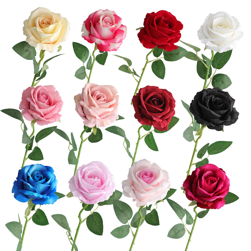 100Pcs/Lot Artificial Velvet Rose Branch Wedding Arrangement Floral Home Decor