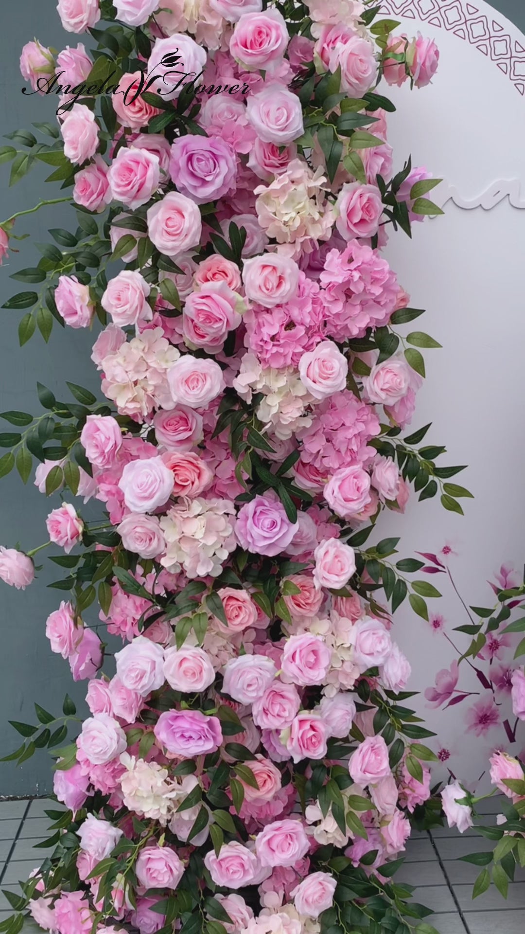 A7750 5D Pink Rose Green Leaves Wedding Backdrop Arch KT Board Decor Floral Arrangement